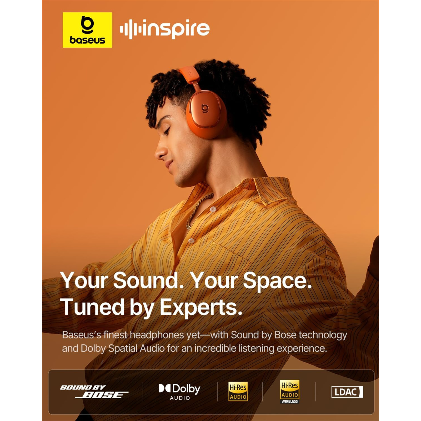 Baseus x Bose Inspire XH1 Wireless Over-Ear Noise Cancelling Headphones - Sunset Coral Sound by Bose - Premium Adaptive -48dB ANC - Bluetooth 6.1 - Hi-Res Audio with LDAC - 360 Dolby Audio - 5-mic Clear Calls - CloudComfort design - Travel