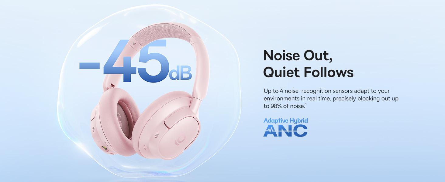 - Real-time -45dB Adaptive ANC - Fully foldable design - Hi-Res Audio with LDAC - SuperBass 2.0 - CloudComfort ear cushions - 5-mic AI clear calls - Up to 55hrs playtime (ANC On)