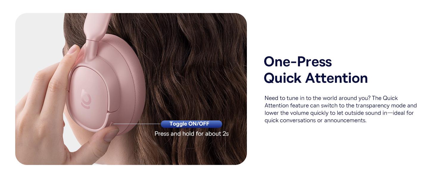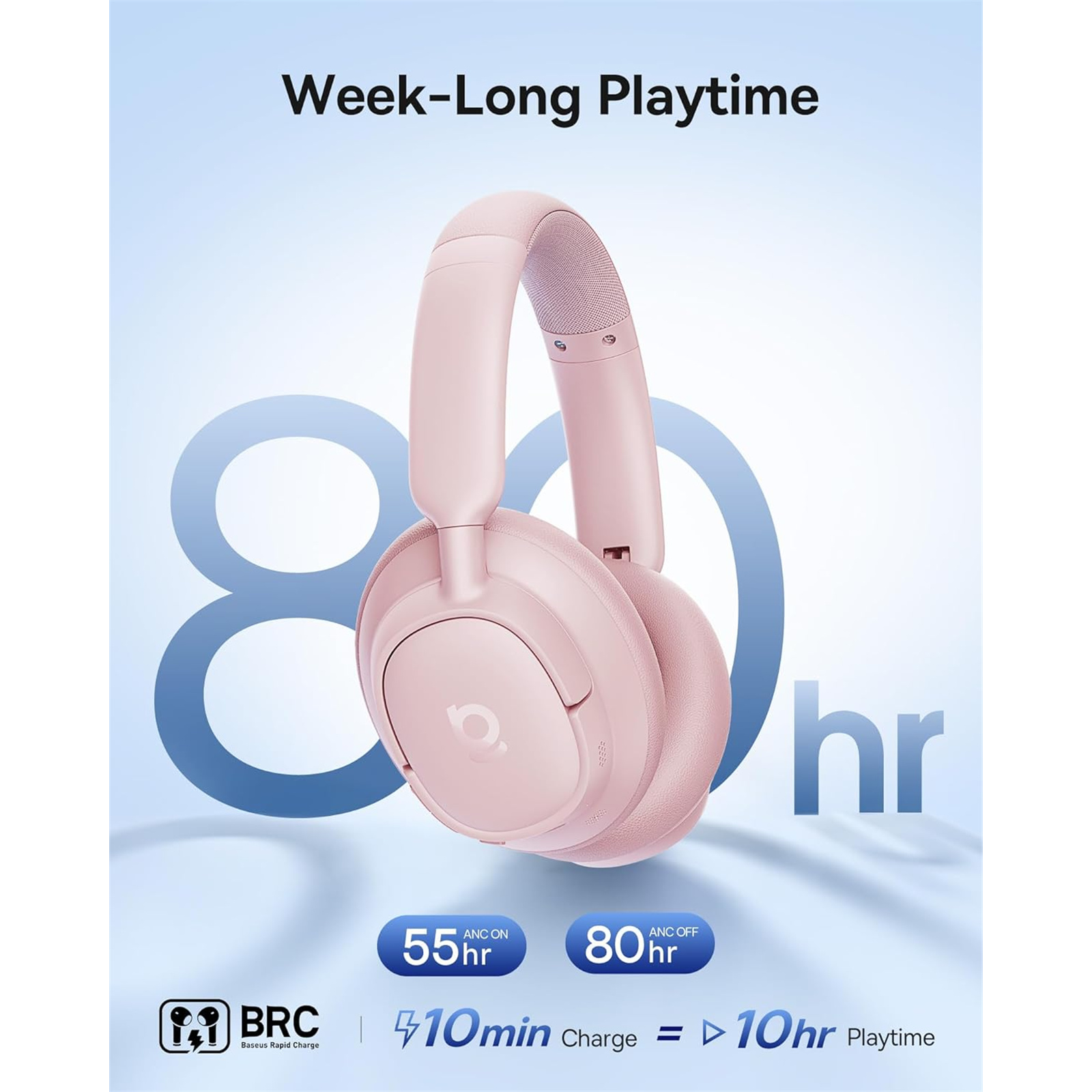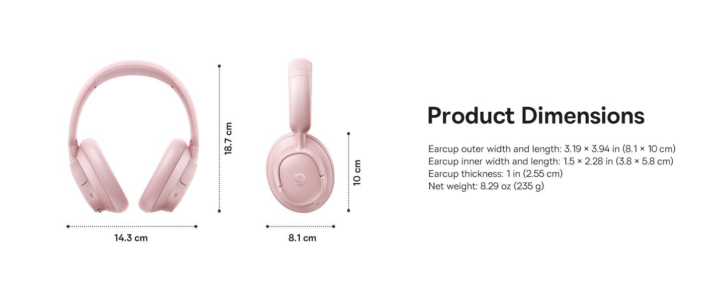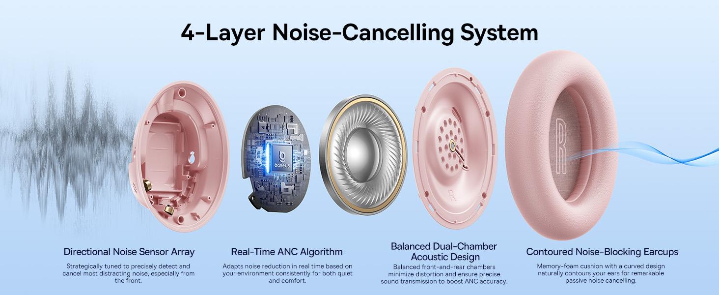 Baseus Bass BH1 NC Wireless Over-Ear Noise Cancelling Headphones - Nebula Pink