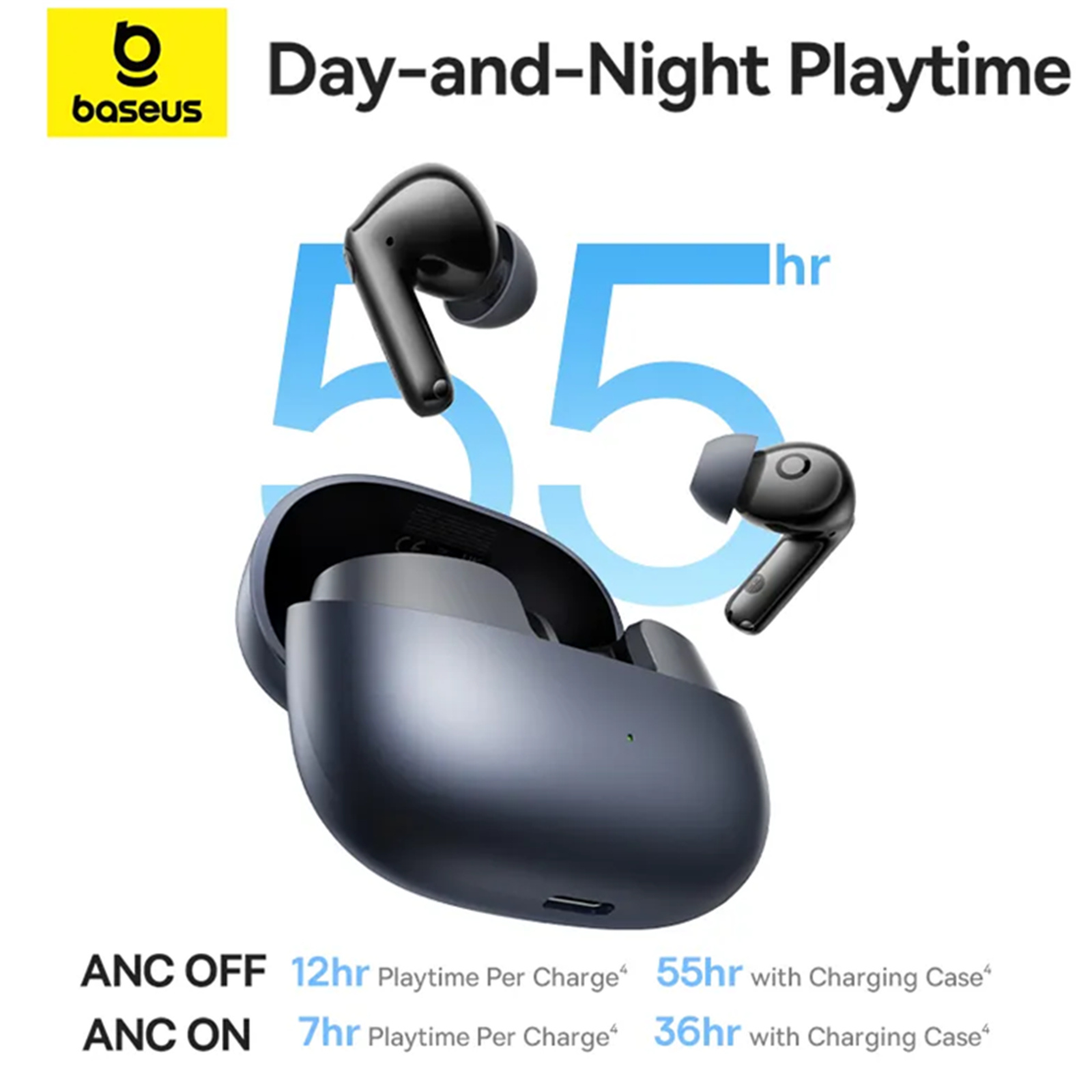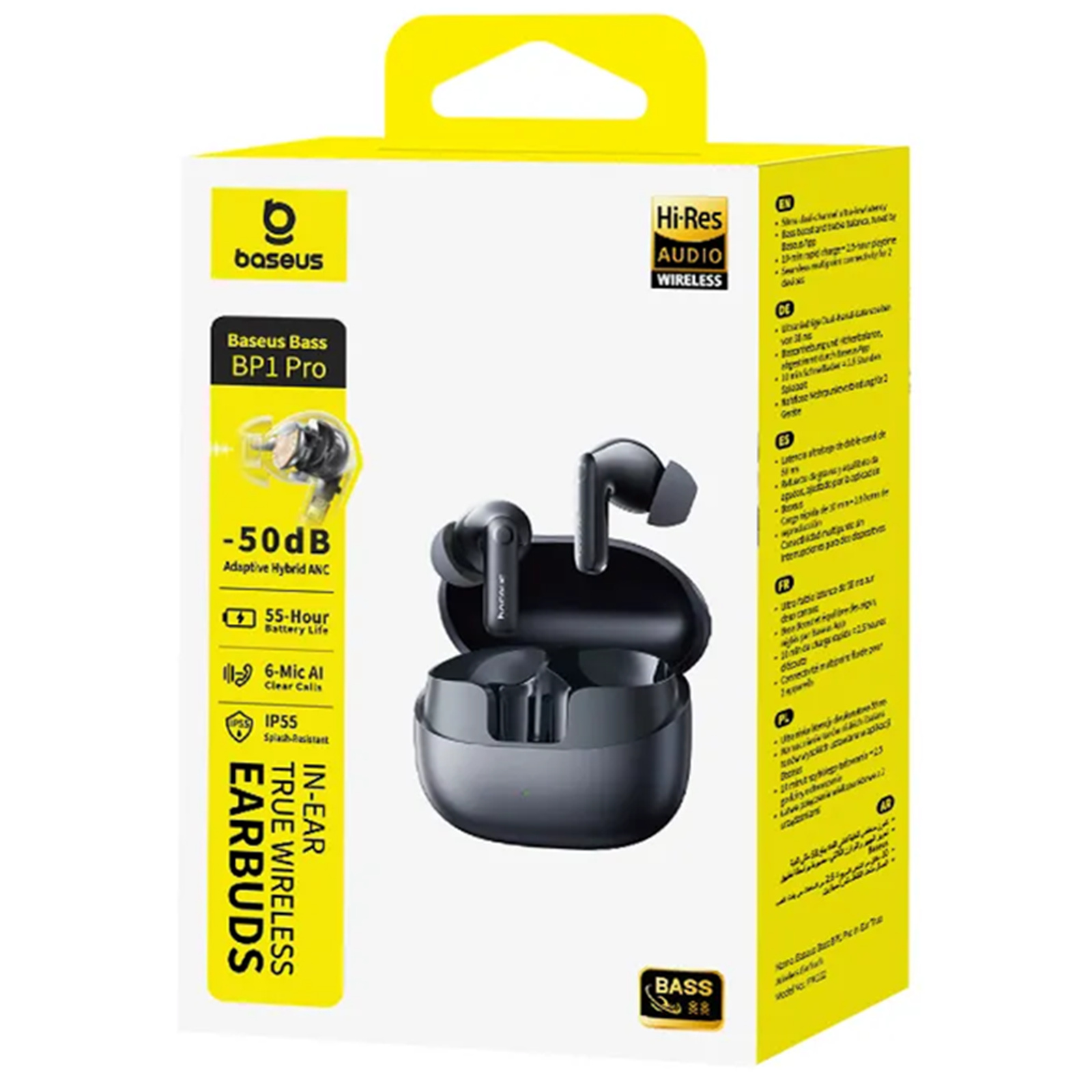 Baseus Bass BP1 Pro In-Ear TWS Earbuds feature -50dB adaptive ANC, 6-mic AI calls, and LDAC for Hi-Res sound. With IP55 Waterproof, 55-hour battery, and volume-adaptive EQ, they blend noise cancellation and audio precision for daily use.
