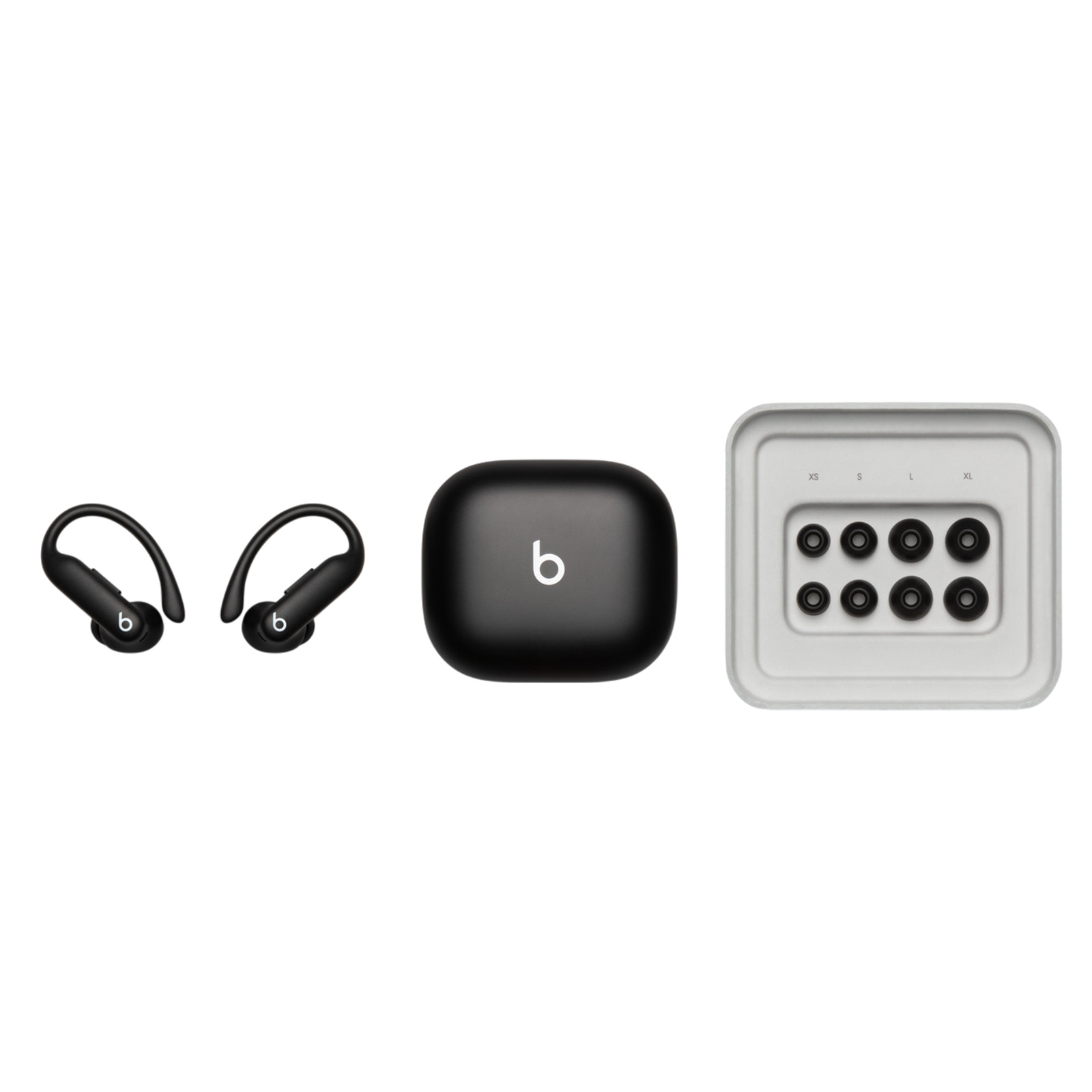 Powerbeats Pro 2 true wireless earbuds, silicone eartips with five size options -- XS, S, M, L, XL (medium pre-installed), wireless charging case, Quick Start Guide, Warranty card