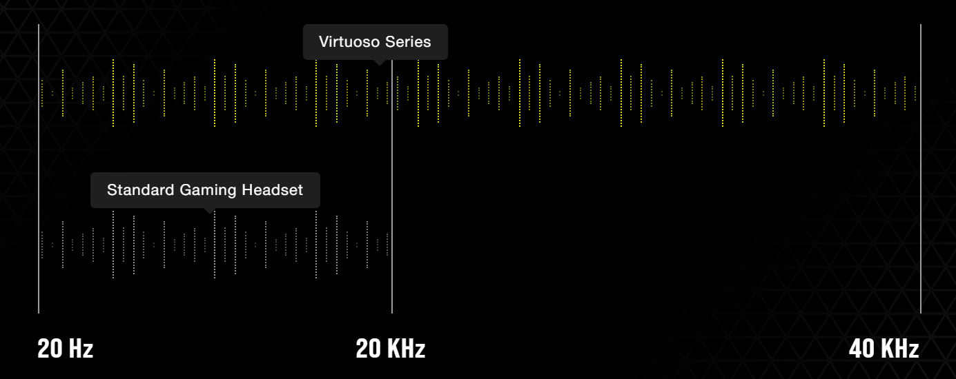 A matched pair of precisely tuned 50mm high-density neodymium speaker drivers deliver impeccable sound with a frequency range of 20Hz-40,000Hz - double that of typical gaming headsets.