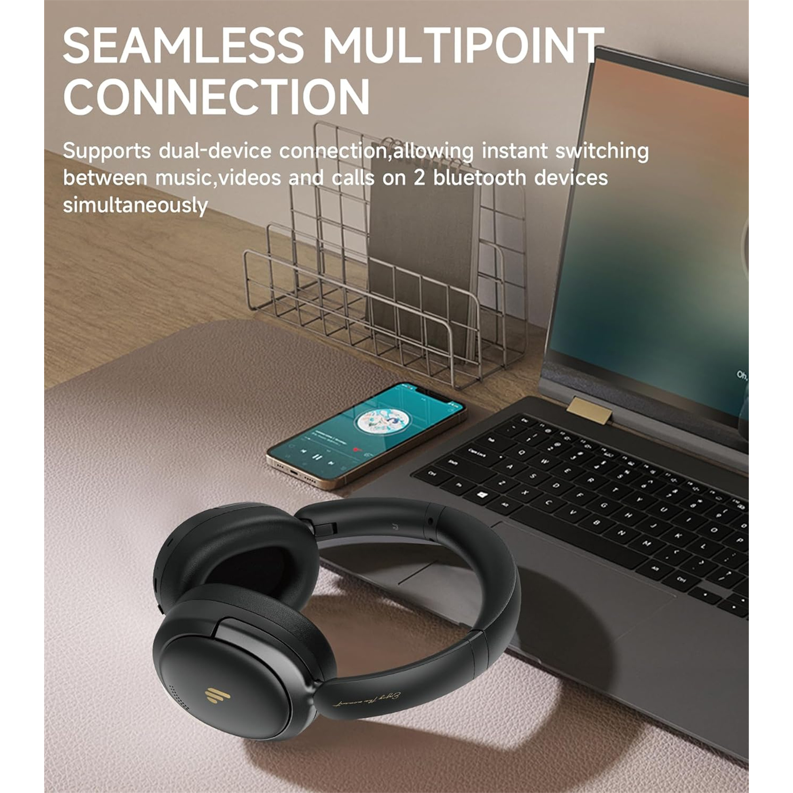 Hybrid Active Noise Cancellation - Hi-Res Audio over USB-C - Foldable Design - Edifier ConneX App for iPhone & Android - Bluetooth 5.4 with Multipoint - Up to 26hrs Battery Life (ANC On)