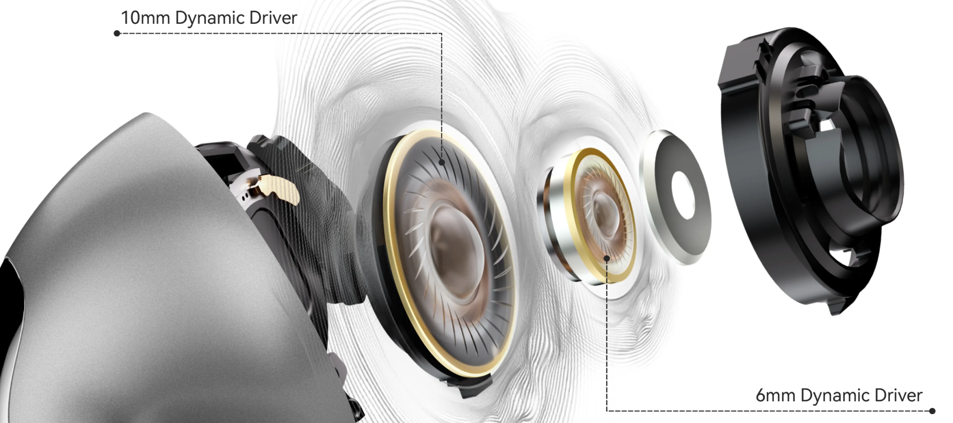 - Rich, balanced sound with a 6mm + 10mm dual dynamic driver setup.