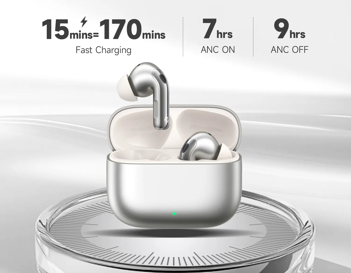 Enjoy up to 9 hours of playtime on a single charge, and up to 36 hours with the charging case-more than enough for long flights or all-day use. In a rush? Just 15 minutes of quick charging gives you up to 170 minutes of listening time.