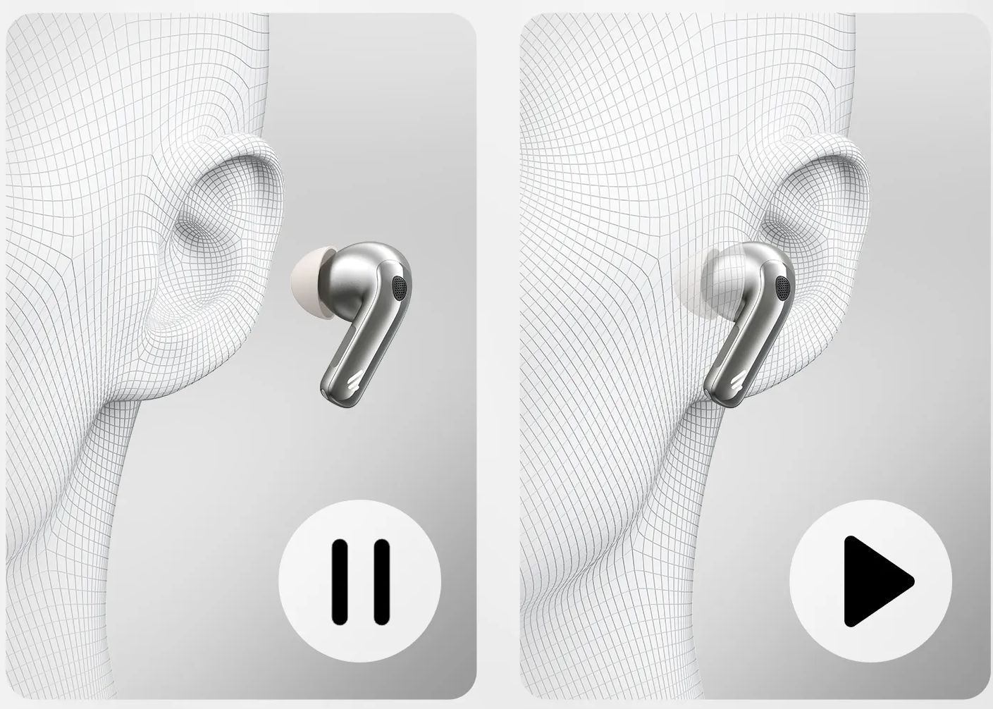 Automatically pauses playback when removed, and resumes when worn-no press needed.