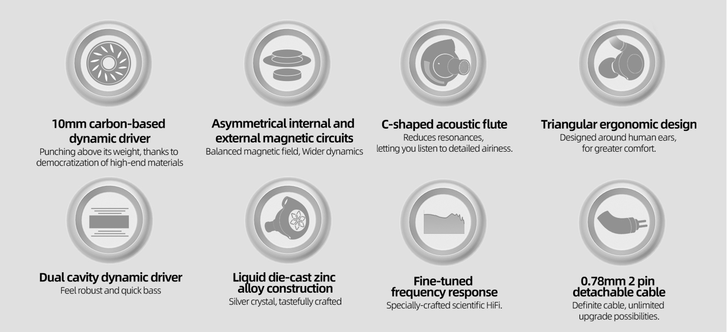 0.78 2pin Detachable 3.5mm Braided Cable - 10mm Carbon-Based Dynamic Drivers - Triangular Ergonomic Design - Die-Cast Alloy Construction - Hi-Res Audio Certified