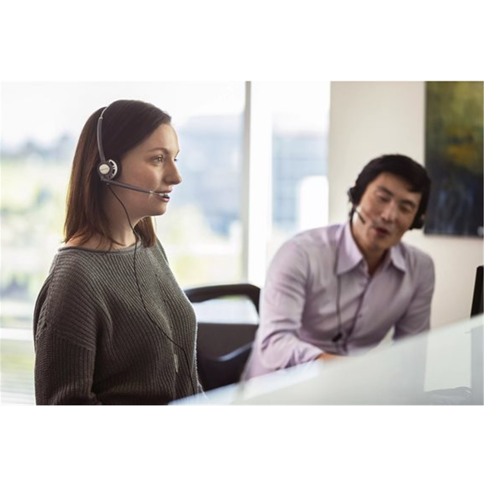 - Unique boom design: Conveniently situated microphone arm stays clear of user's peripheral vision while the unique, extendable boom ensures precise positioning and enables optimal noise cancellation.
