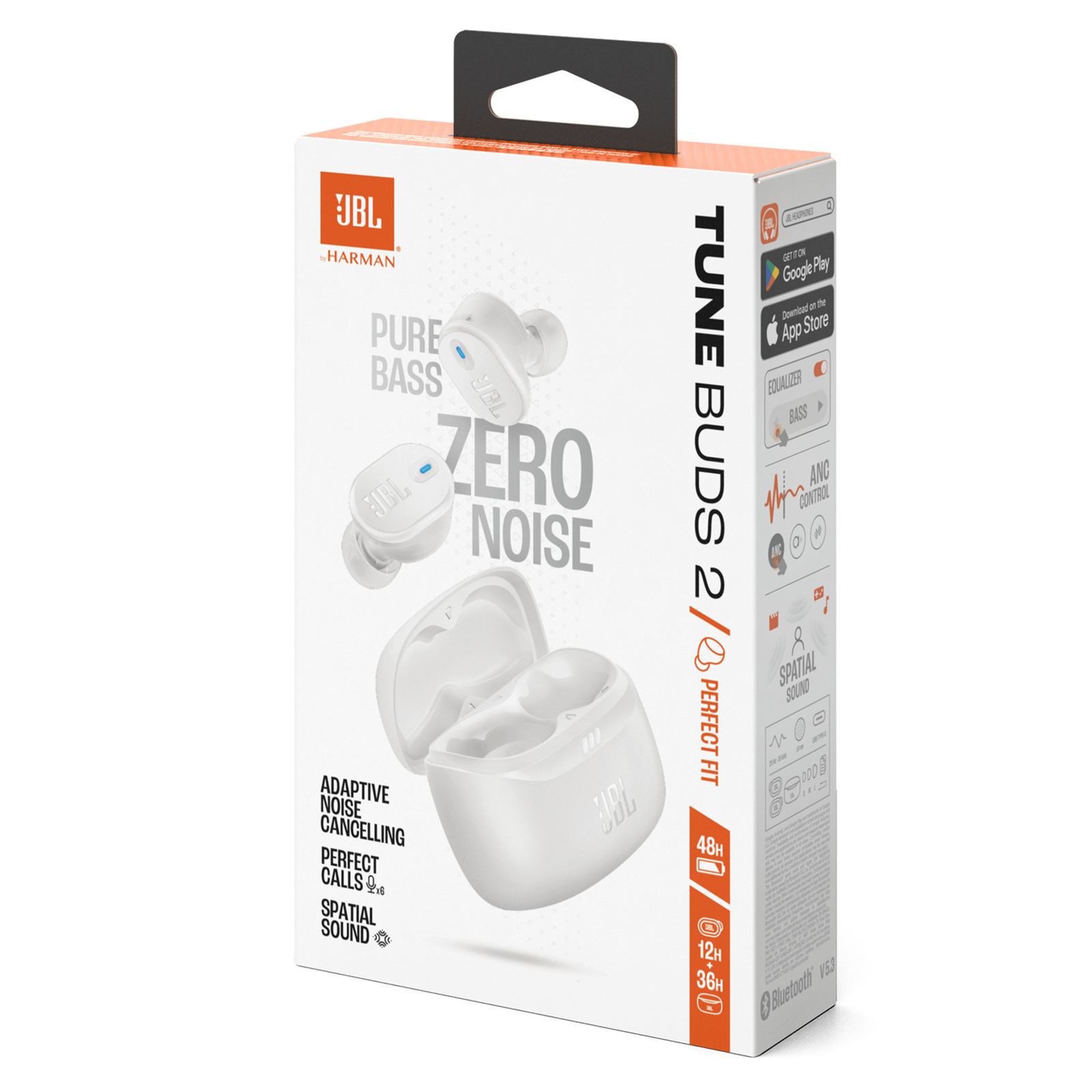 JBL Tune Buds 2 True Wireless Noise Cancelling Earbuds - White JBL Pure Bass Sound - Adaptive ANC & Smart Ambient - Multipoint - IP54 sweat & water resistant - Personalised sound - 6-mic clear calls - Up to 10hrs battery life/40hrs with cas