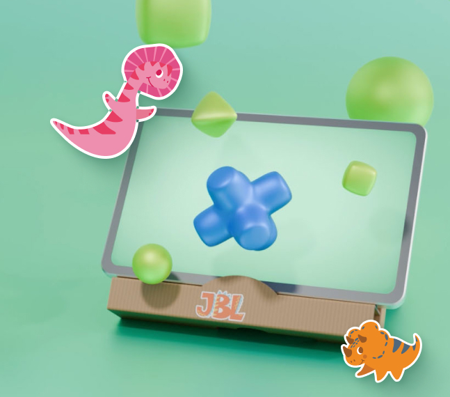 The plastic-free packaging folds into a fun device stand and a playful JBL sticker set is included so kids can personalize their headphones