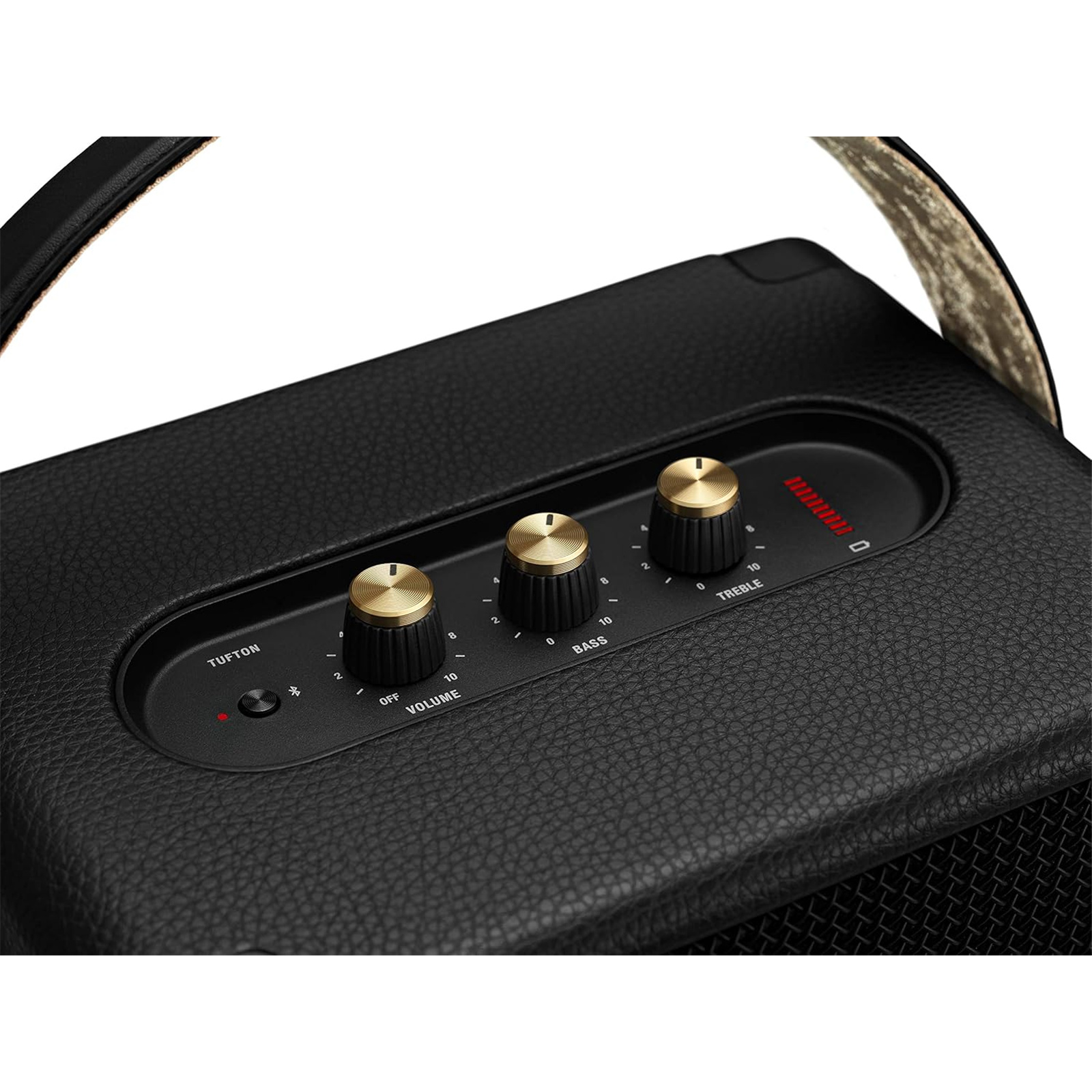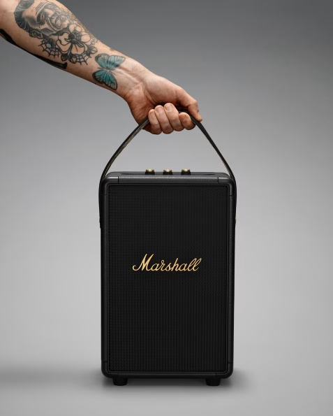 Tufton is the mightiest portable speaker from Marshall. It's engineered as a 3-way system, producing sound from three separate drivers from the front of the speaker. An additional mid-range driver is located on the rear of the speaker, offering a clear and articulate sound across all frequencies.