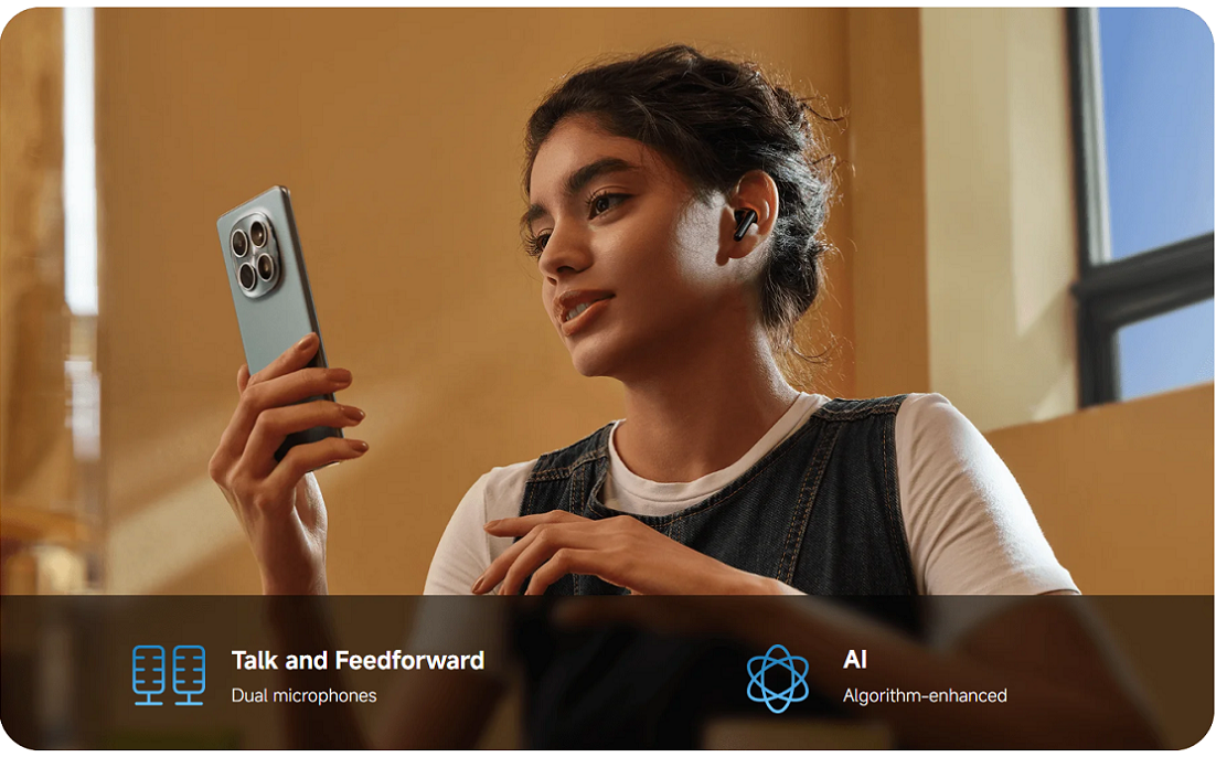 Equipped with dual microphones and enhanced by AI algorithms, the earbuds precisely suppress environmental noise. Significantly enhance call clarity for smoother communication and an exceptional listening experience.