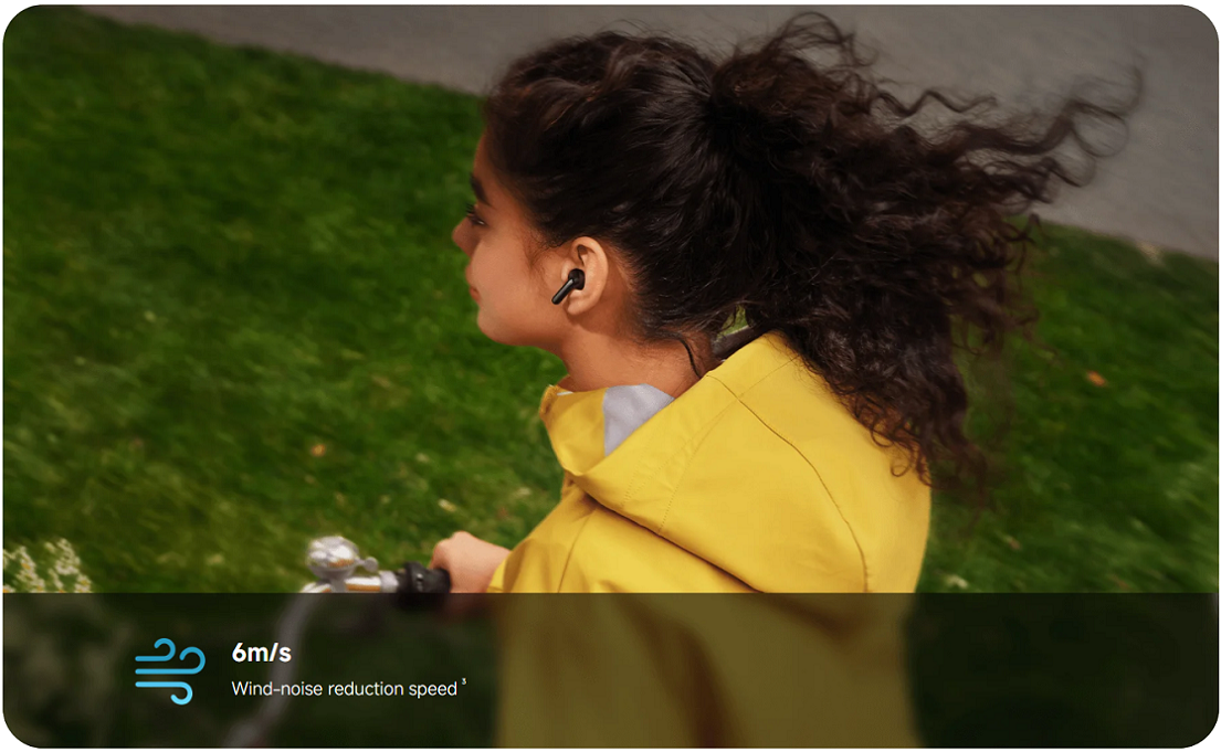 Featuring an optimized wind-noise reduction structure and intelligent wind-noise detection algorithm, the earbuds can withstand wind speeds of up to 6m/s. Even in windy outdoor environments, they effectively reduce wind interference, maintaining clear and stable calls with minimal environmental interference.