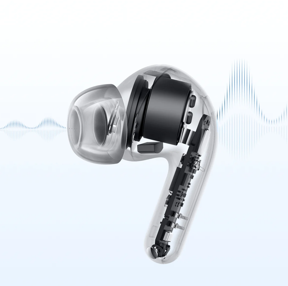 Powered by dual-channel AI noise suppression algorithm, the earbuds can accurately distinguish target voices from background noise in complex environments. This combination ensures stable and consistent noise reduction and prevents over-cancellation from "cutting off" the ends of words. In calls, online meetings, live streaming and other scenarios, it ensures your voice remains clear and intelligible for efficient, uninterrupted communication.