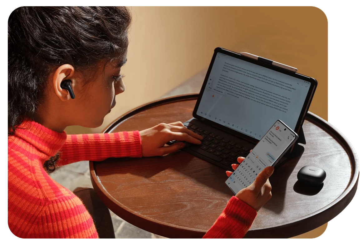 Bring the earbuds close to your device and a connection prompt will appear automatically. Pairing is completed with a single tap, making new device connections quicker and more convenient.