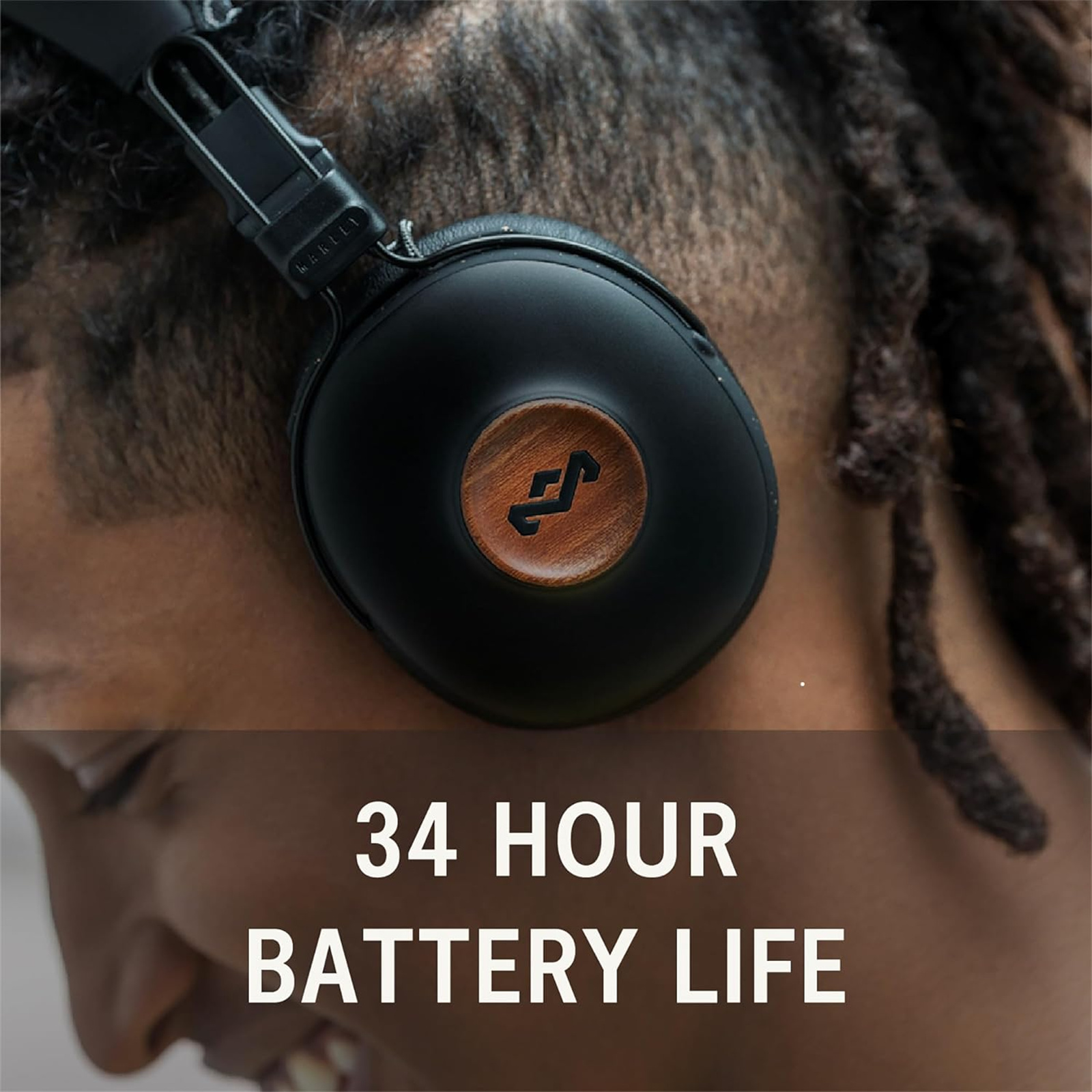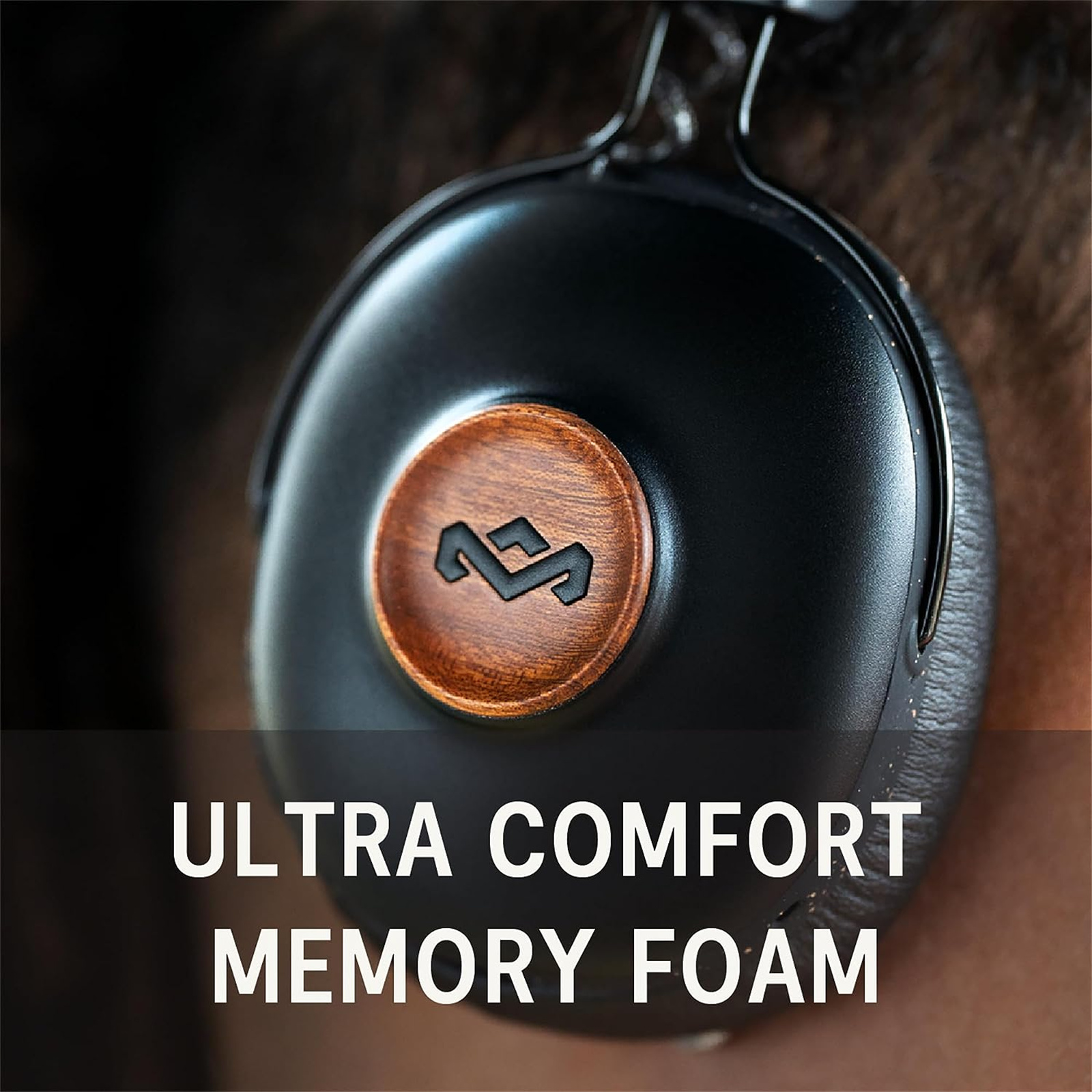 MARLEY Positive Vibration Frequency Wireless Over-Ear Headphones - Signature Black Sustainable Materials - Premium Wood & Aluminium Construction - Bluetooth 5.2 - Type-C Quick Charge + up to 34hrs Battery Life - Foldable - Durable - Carry B