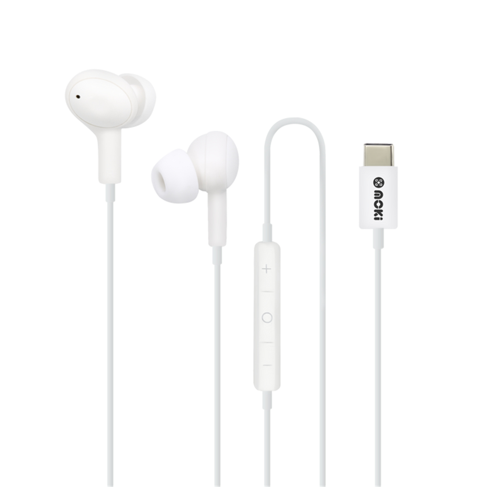 Moki Type-C Connect Earphones Inner Ear + Mic & Control - White