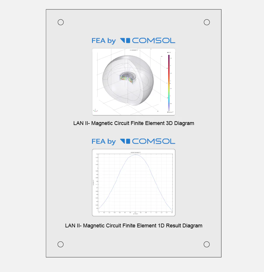 In order to get the best out of the new glass-dome diaphragm dynamic driver, Lan II features a high-efficiency dual magnetic circuit, including both internal and external magnetic setups on the driver. It produces a strong magnetic flux that results in a high-sensitivity design, delivering outstanding dynamic acoustic performance.