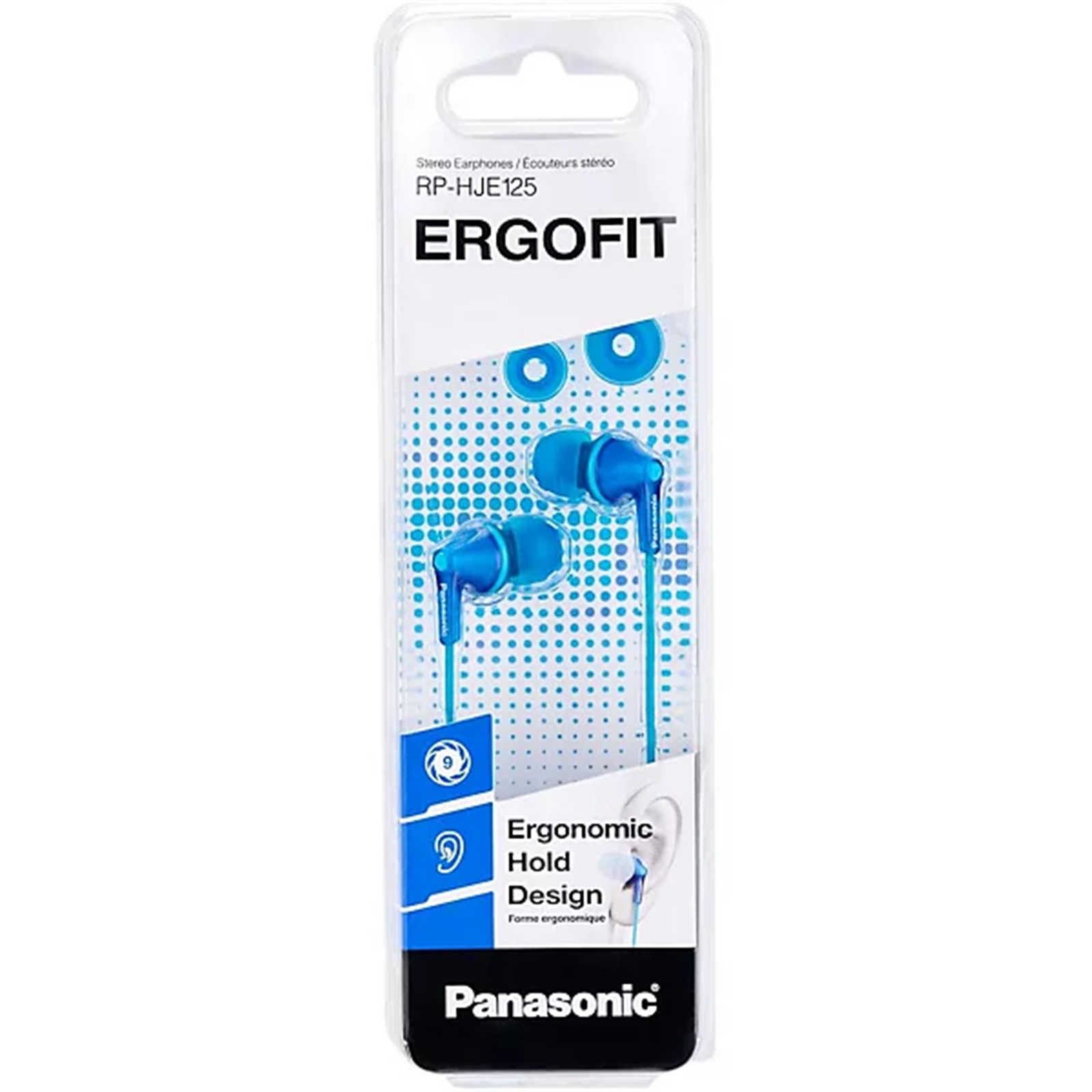 Panasonic HJE125E Wired In-Ear Headphones - Blue Ergo Fit with 3 Size Earpads for Ultimate Comfort