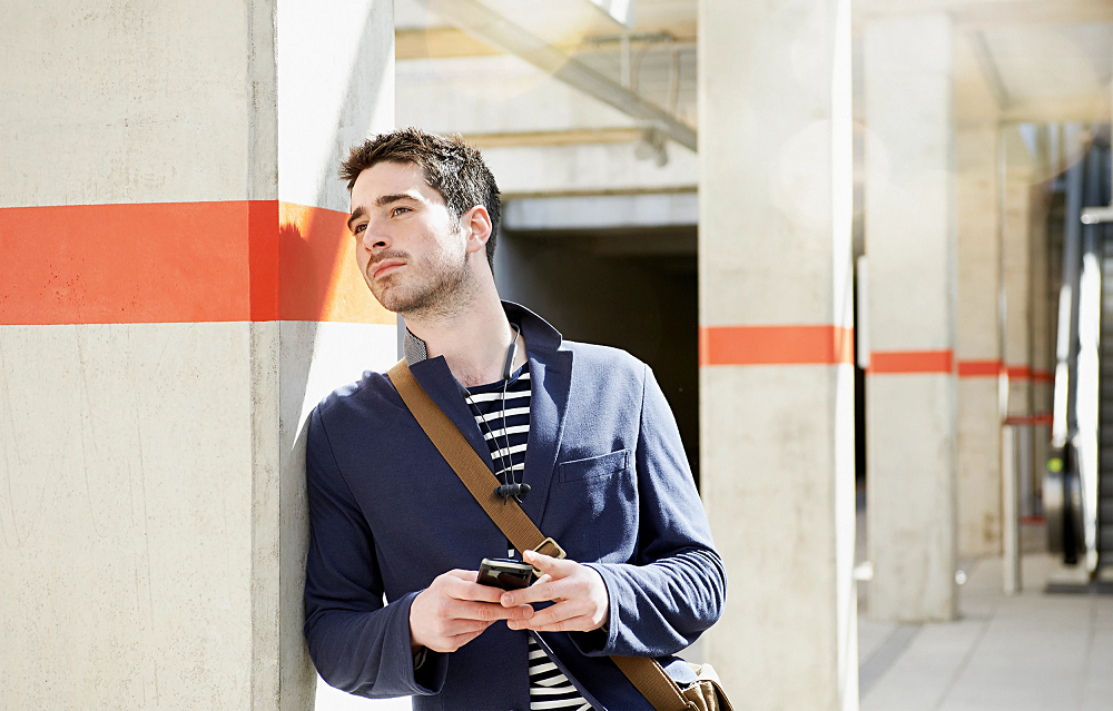 Flexible wing tips provide a secure fit under the ridge of your ear, enhancing passive noise isolation. The oval acoustic tube and interchangeable earbud covers ensure a comfortable in-ear fit, while the flat headphone cable rests comfortably behind your neck.