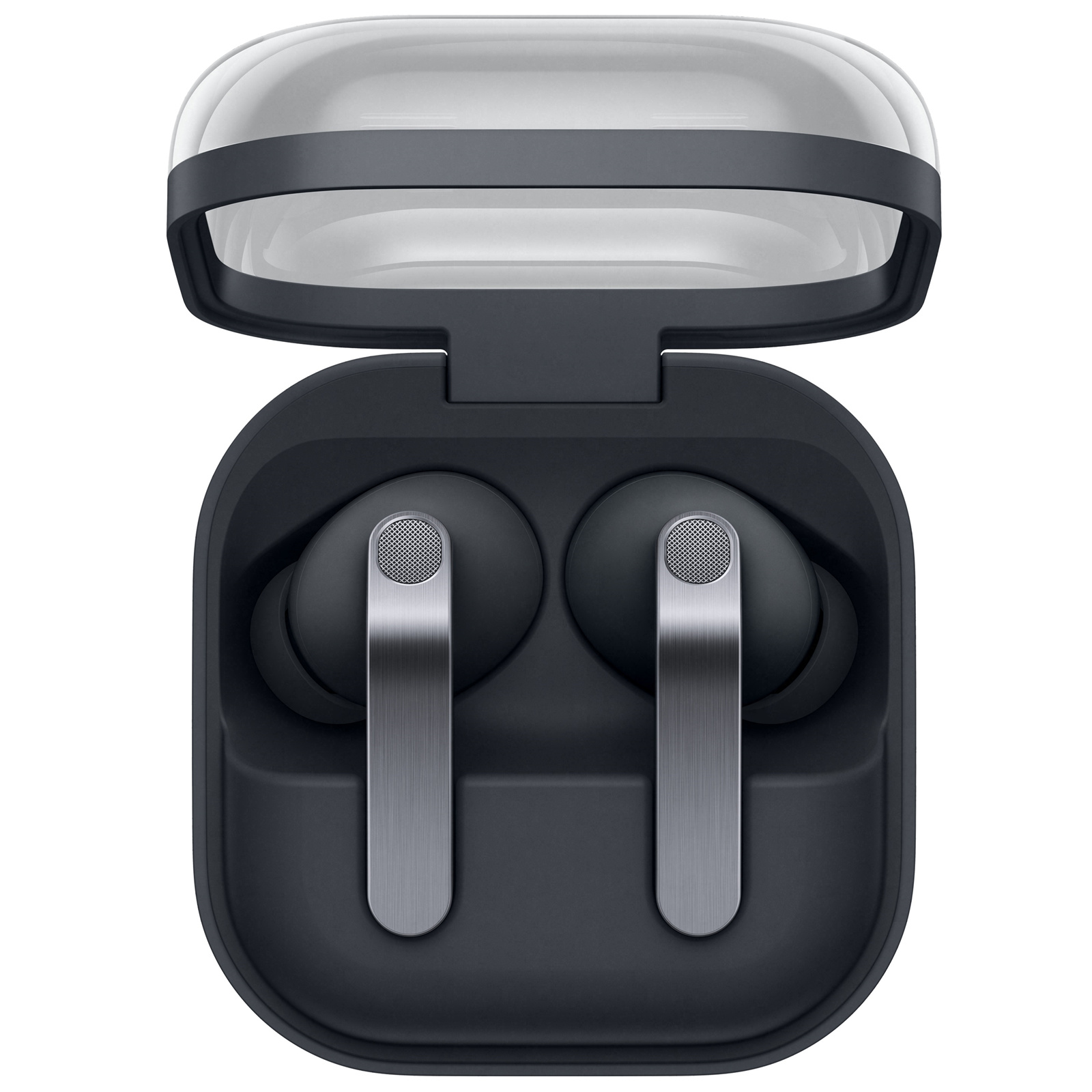 The real metal blade defines both design and control. Finely sculpted from aluminium, Galaxy Buds4 Pro shines elegantly, turning heads. Finished in timeless colours, it presents a classic look that feels sophisticated yet versatile. Shaped for lasting comfort and stability, the surface that touches your ears feel naturally comfortable to provide a secure fit. From docking and charging to control, every interaction flows seamlessly through an ergonomic design.