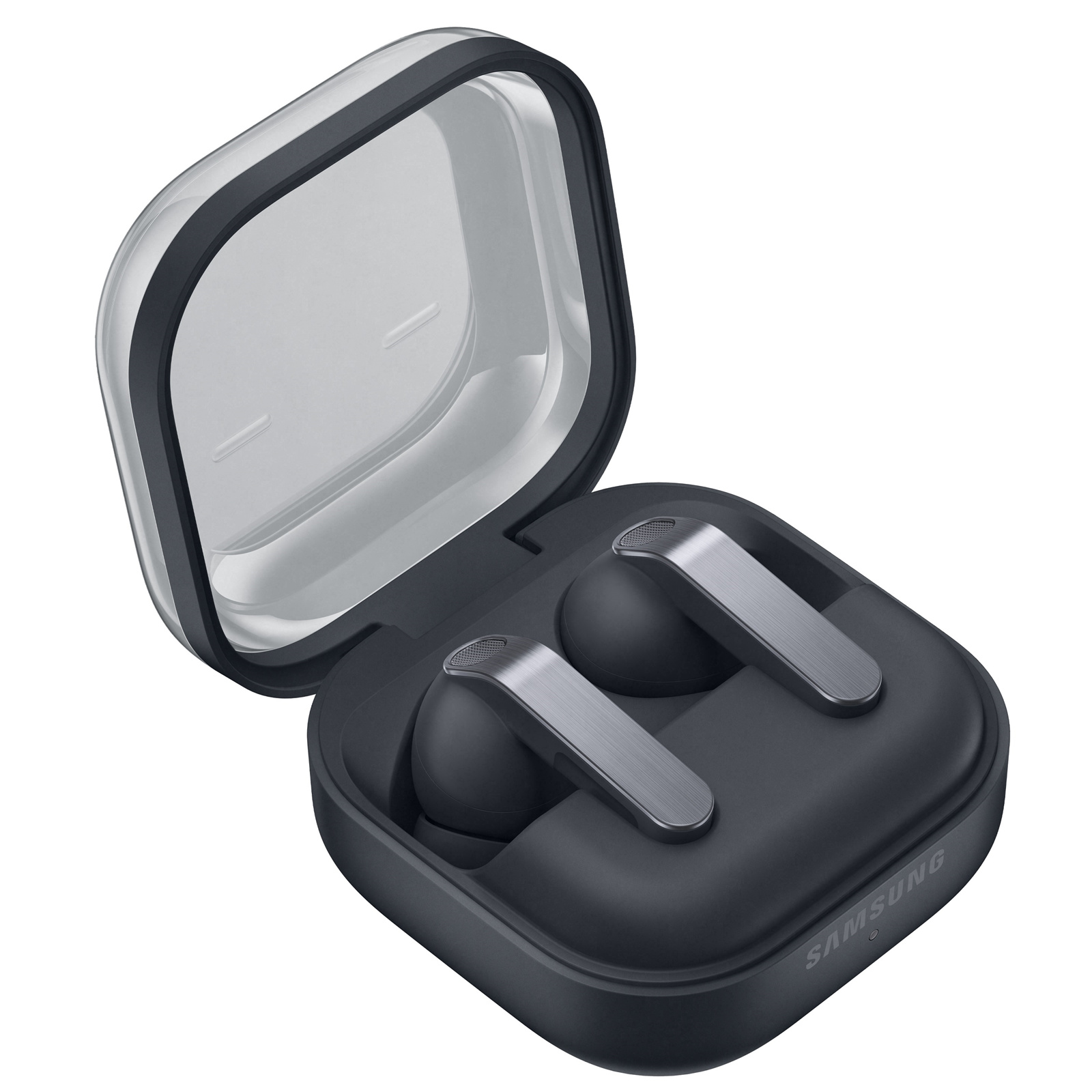 Check that Galaxy Buds4 Pro is properly in place through the translucent cover. Charge wirelessly and simply take it anywhere - its compact, lightweight design makes it easy to carry.