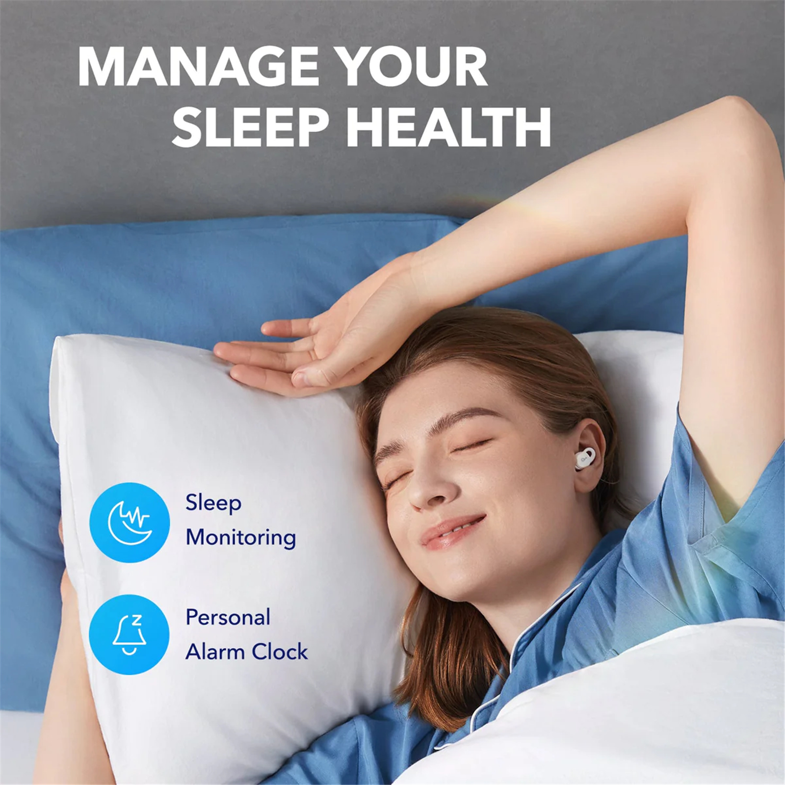 Sleep A10's slim profile and lightweight build fit comfortably in your ears throughout the night, even if you sleep on your side or move around a lot.