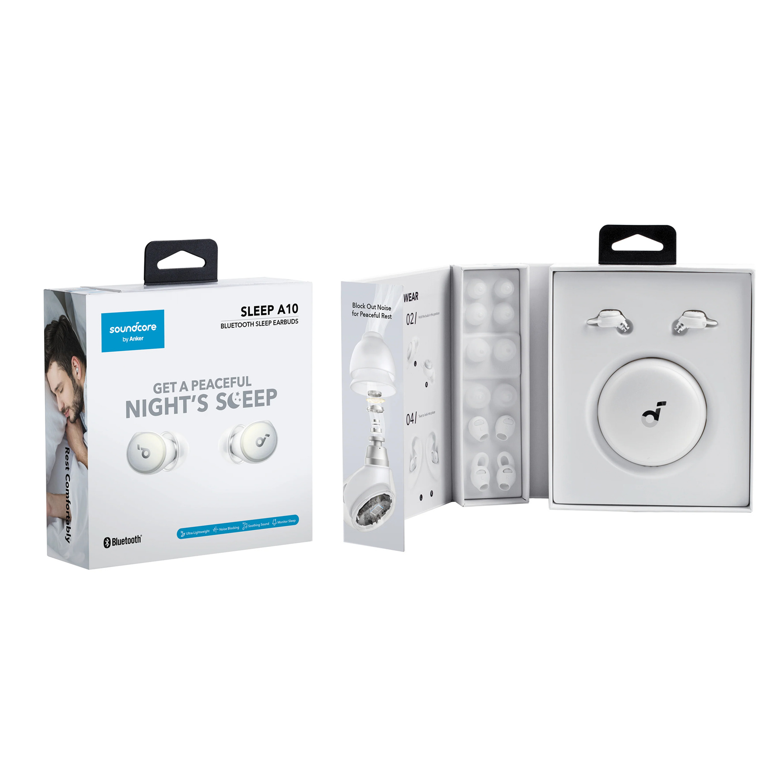 Soundcore by Anker Sleep A10 True Wireless Noise Masking Earbuds - White 4-Point Noise Masking System - Comfortable Fit - Unlimited Audio via Bluetooth 5.2 - Sleep Monitoring & More - Up to 10 Hours Battery Life / 80 Hours Total with Chargi