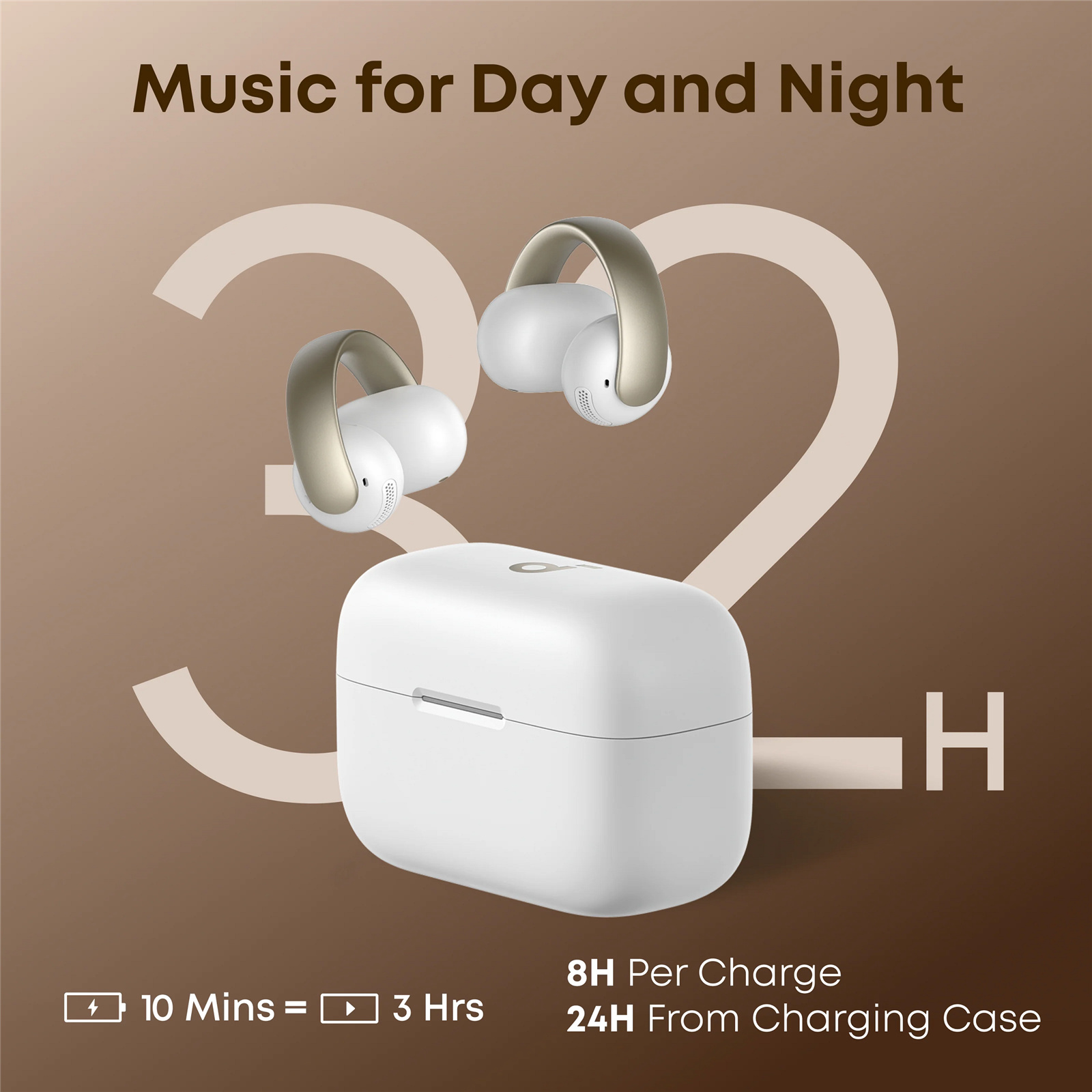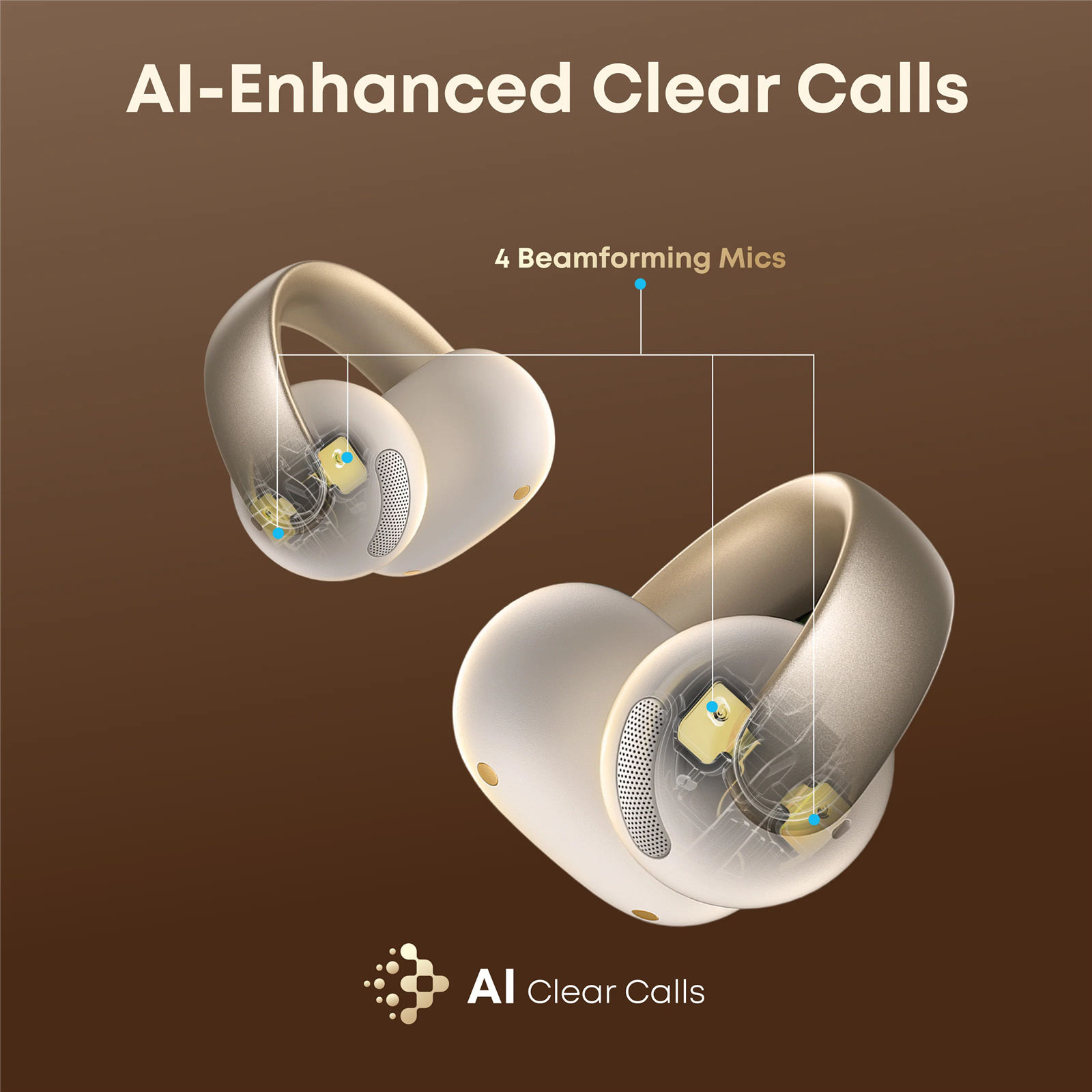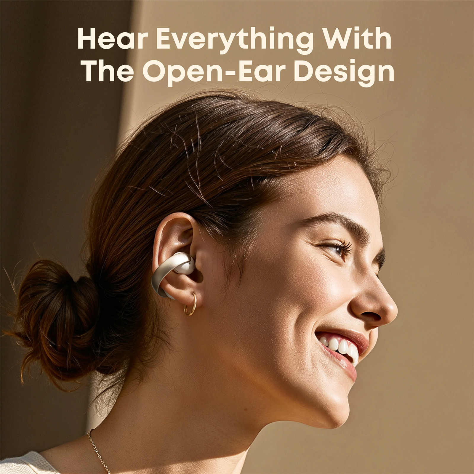 Innovative Flexible Open-Ring Design - EasyTap Control - Powerful Bass - Multipoint - 4-Mic AI Clear Calls - 2-size Ear Grips - Up to 8hrs playtime/32hrs with charging case