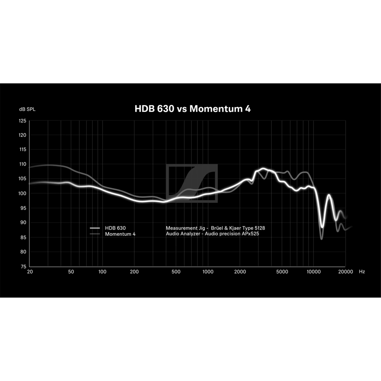 The HDB 630's curve compared to the MOMENTUM 4 shows how audiophile tuning changes the listening experience.