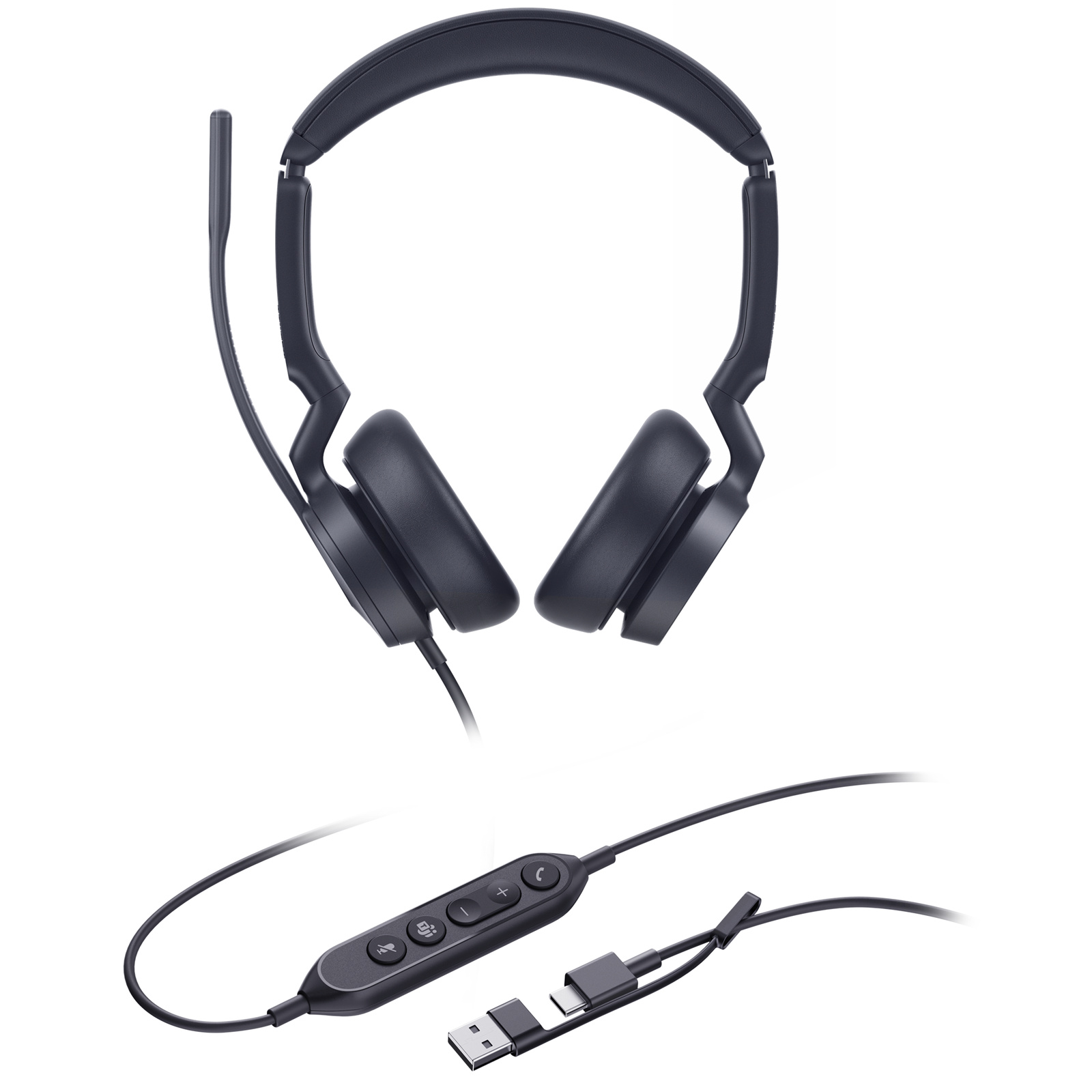 Yealink UH46 USB-C/A Wired On-Ear Headset - Teams Certified 3-Mic Noise Cancellation / In-Line Controls