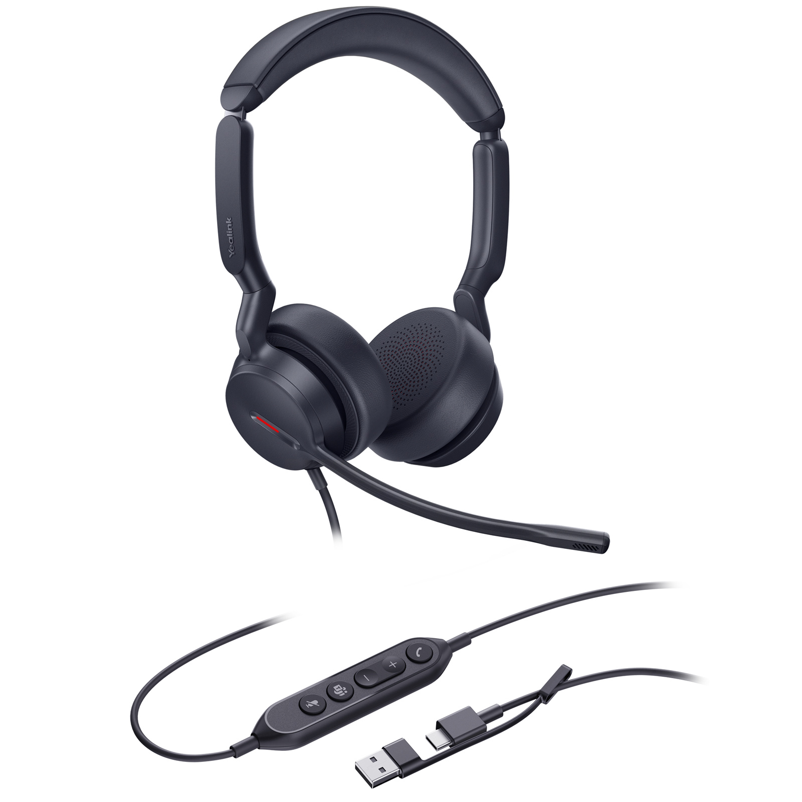 Yealink UH44 USB-C/A Wired On-Ear Headset - Teams Certified 2-Mic Noise Cancellation / In-Line Controls