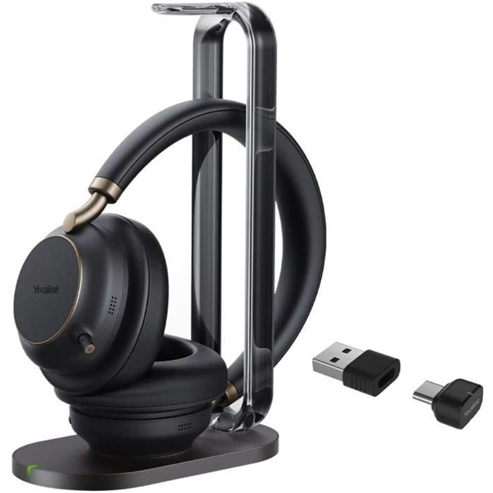 Yealink BH76 Plus Bluetooth Over-Ear ANC Headset with Charging Stand - Teams Certified USB-C/A / 5-Mics Noise Cancellation / Dynamic ANC / Retractable Mic / Busy Light / QI Wireless Charging / Up to 45m Distance / Up to 35-Hour Talk-time