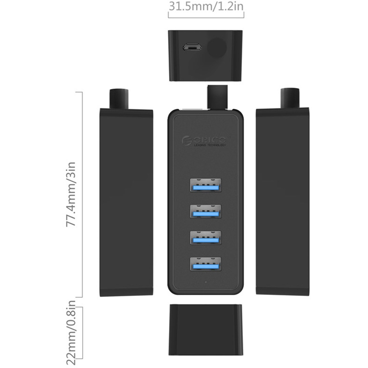 Orico 4 Port High Speed USB 3.0 Hub with OTG Function - Black
