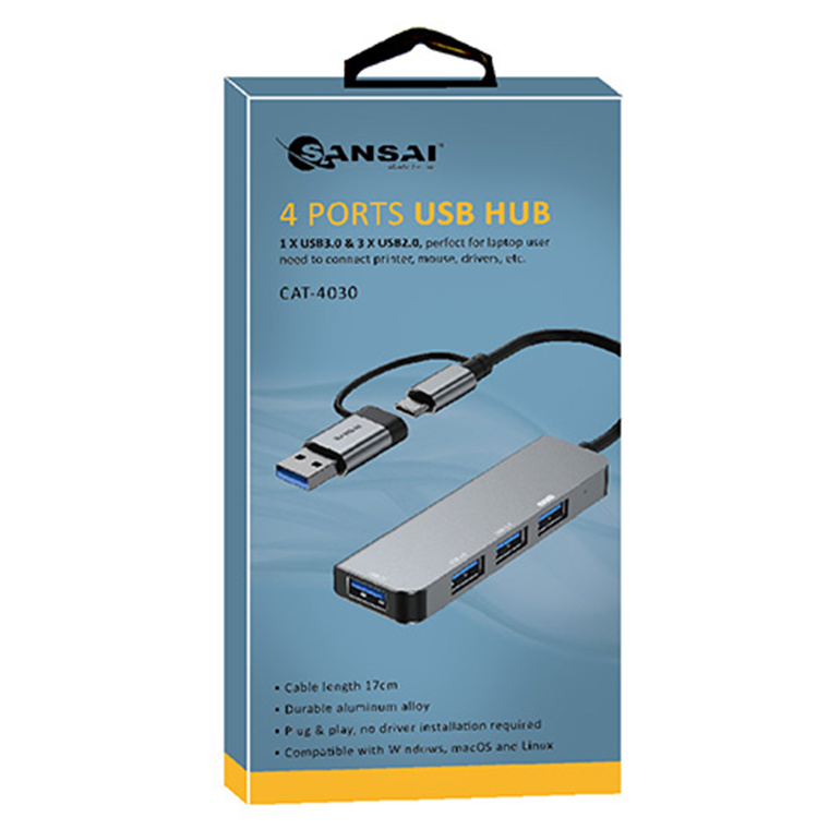 Product URL: https://www.pbtech.co.nz/product/HUBSPB4476/Sansai-CAT-4030-4-Ports-USB-Hub