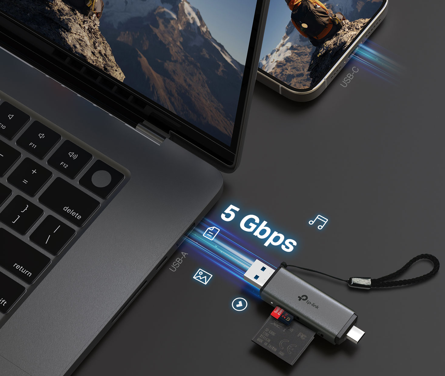 TP-Link UA430D USB 3.0 USB-C/A 2-in-1 SD & microSD Card Reader 5 Gbps USB 3.0 Type-C&A / Support UHS-I 200 MB/s & Dual Card Reading Simultane