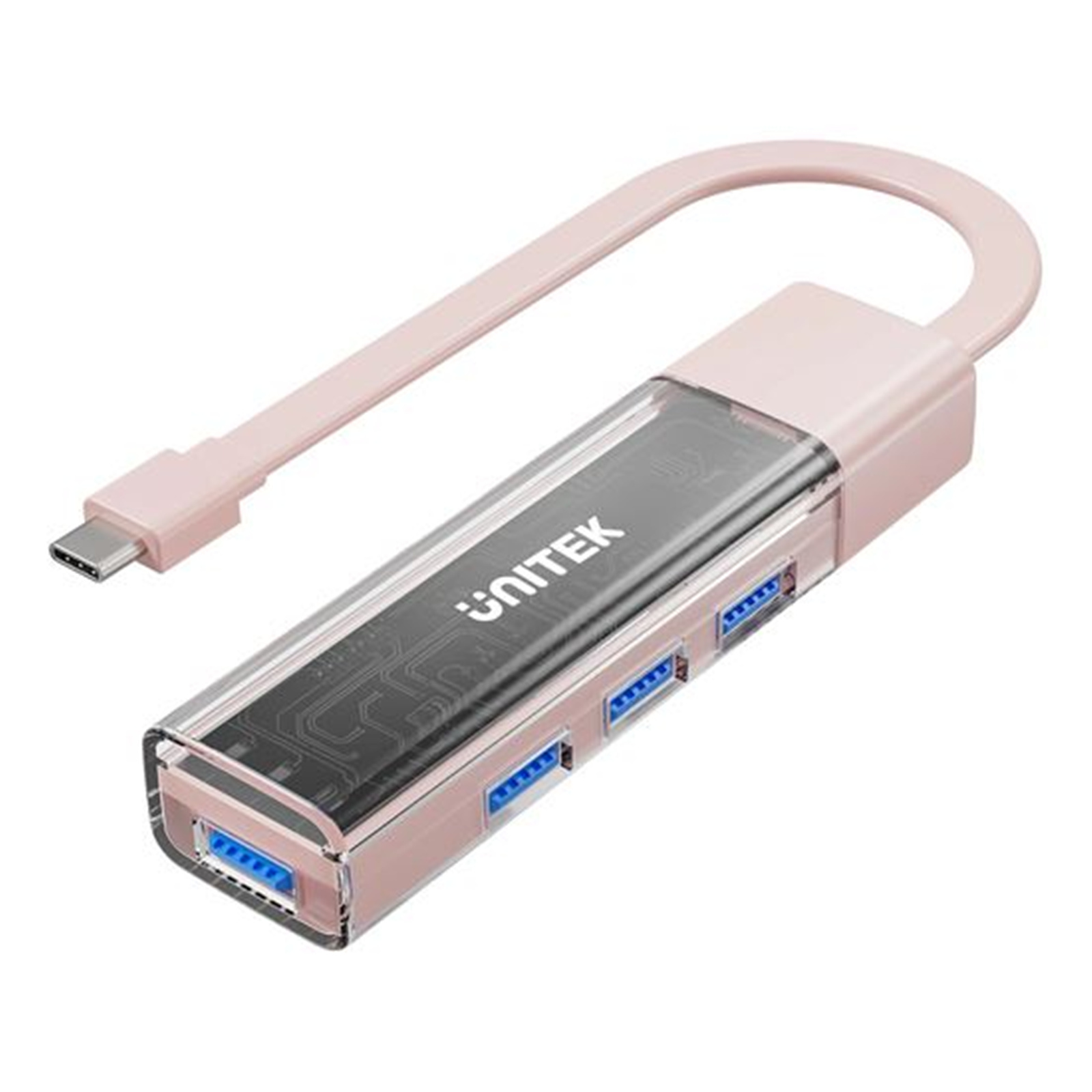 Unitek 4-in-1 USB 3.0 Multi-Port Hub with USB-C Connector - Pink