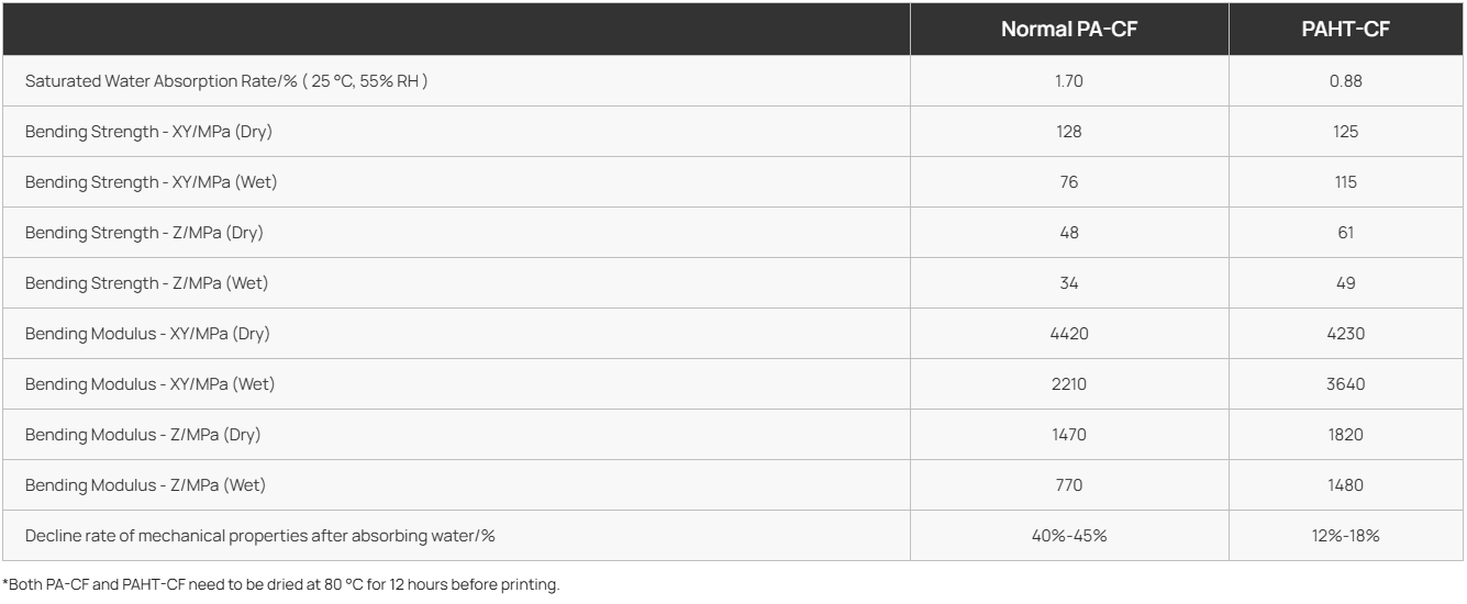 Bambu PAHT-CF maintains excellent mechanical properties and dimensional stability even when exposed to high humidity.