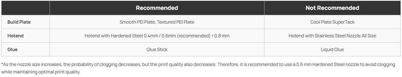 - For better print results, please refer to: Printing tips for Engineering materials on WIKI..