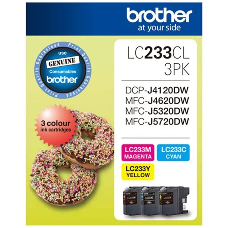Brother LC233CL3PK Ink Cartridge - Cyan / Magenta / Yellow - 3 Pack 500 Pages - for Brother DCPJ4120DW / DCPJ562DW / MFCJ4620DW / MFCJ480DW / MFCJ5320DW / MFCJ5720DW / MFCJ680DW / MFCJ880DW Printer