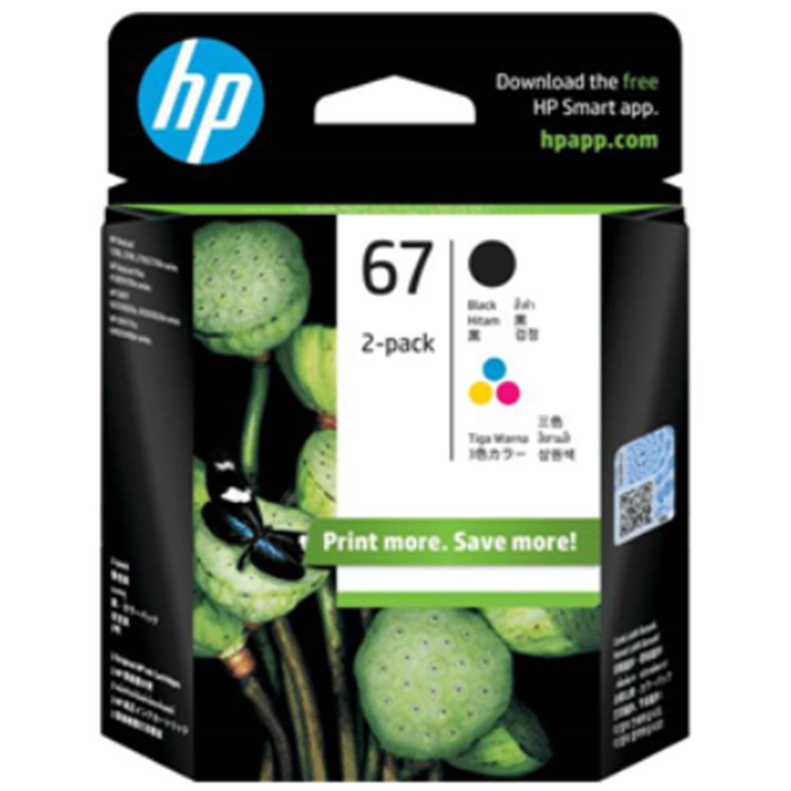 HP 67 Ink Cartridge Value Pack - Black + Tri-Colours Black Yield 120 Pages & Tri-Colour Yield 100 Pages - for HP DeskJet 2330 / 2720 / 2721 / 2723 / 2820e / ENVY 6420 / 6020 Printer