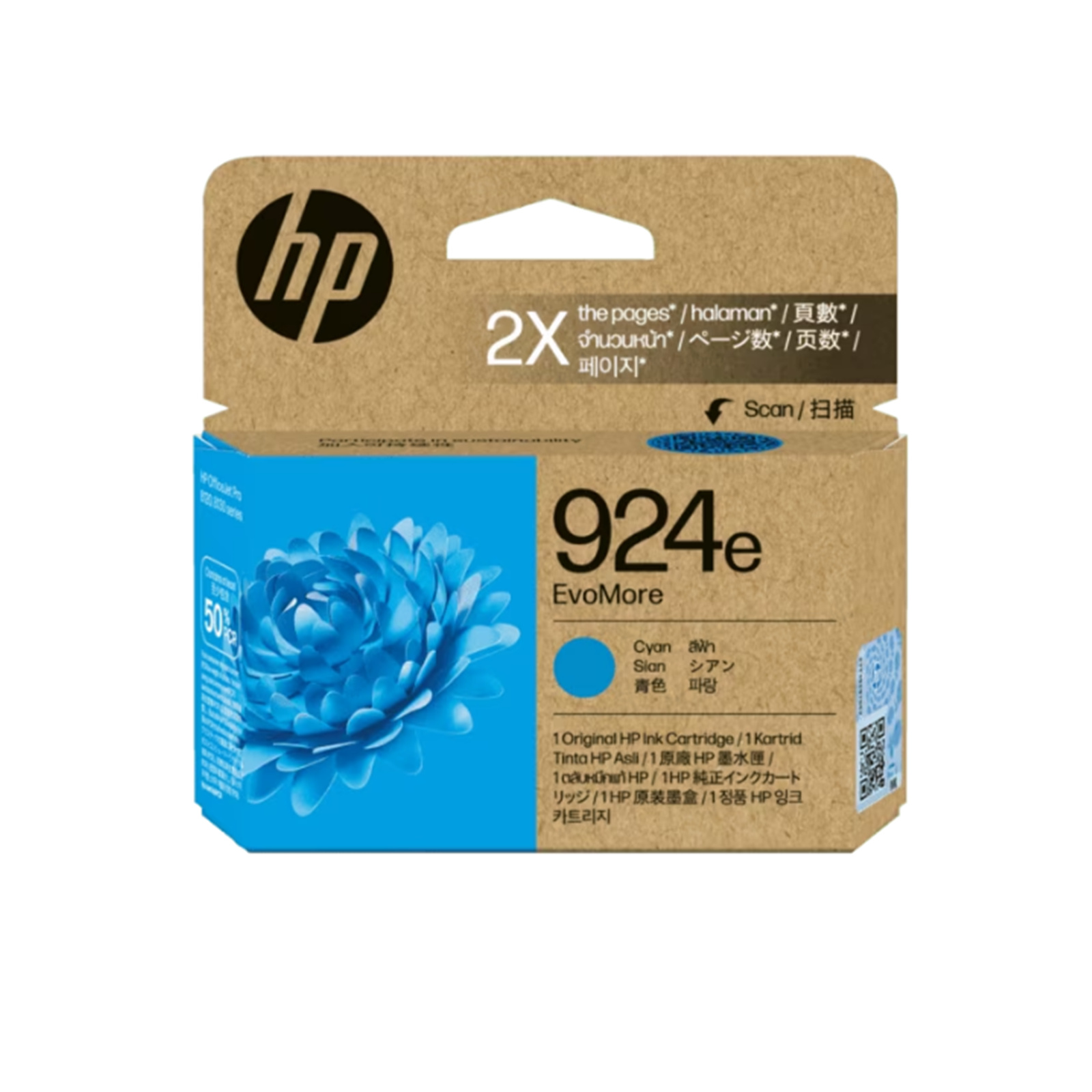 HP EvoMore 924e Ink Cartridge - Cyan, High Yield 800 Pages - for OfficeJet Pro 8130e / 8120e / 8123 / 8130 Printer