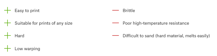 PLA is the most widely used filament, known for its great looks and ease of printing. It is an excellent choice for large objects because of its low thermal expansion, which results in minimal warping. At the same time, its low melting temperature makes it suitable for small parts as well.