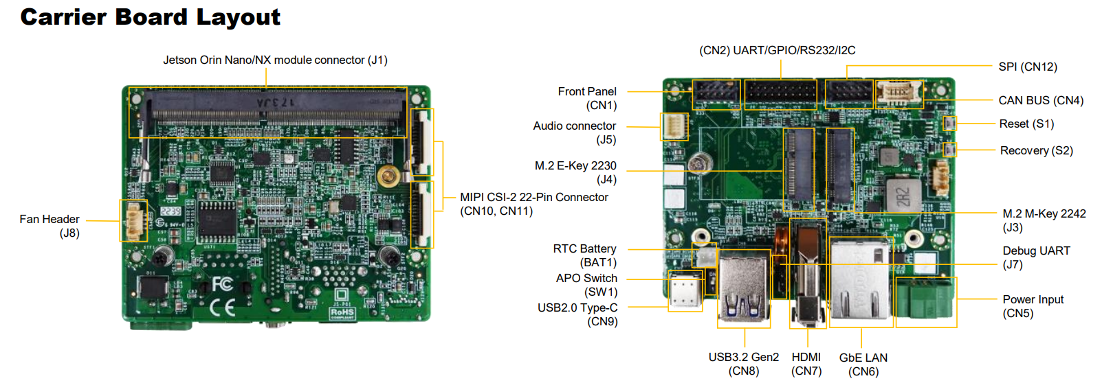 - Supports NVIDIA Jetson Orin™ NX and Orin Nano™ (Super Mode-enabled) module