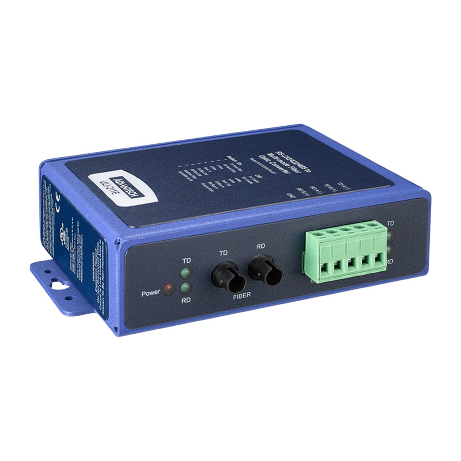 Advantech BB-FOSTCDRI-PH-MT ULI-211E Serial to Fiber Converter, RS-232/422/485 TB to MM Fiber ST, Ind. Panel, C1D2