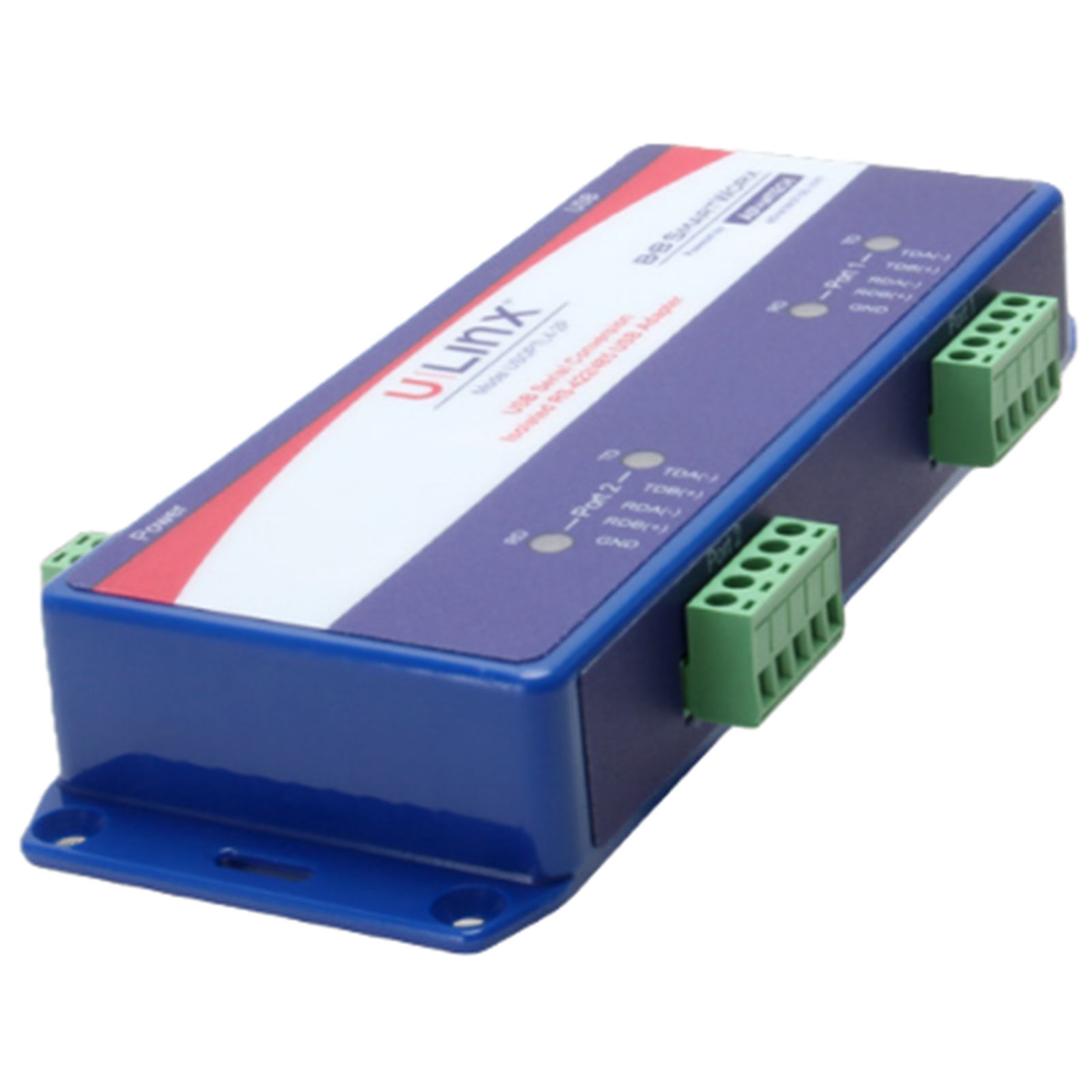 Models BB-USOPTL4-2P offer this solution and are great for any application that requires long range or multi-drop capabilities. Both models offer a high retention USB interface, removable terminal blocks on the serial side and have LED's to indicate data flow. Simply plug the converter into an available USB port on your computer or USB hub and install the drivers (available for download from website). The device will show up as additional COM ports in the Windows Device Manager, which are fully compatible with your Windows applications. A USB cable is included.