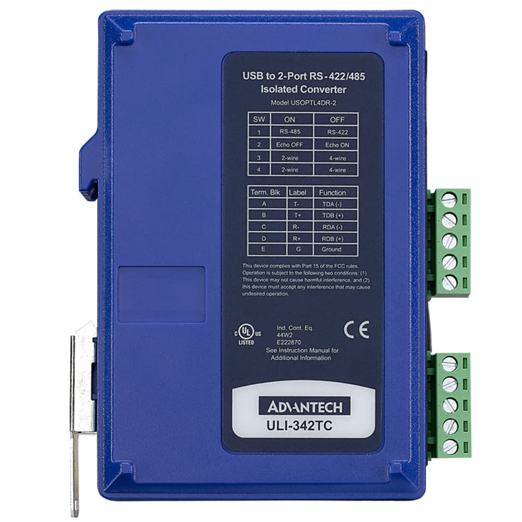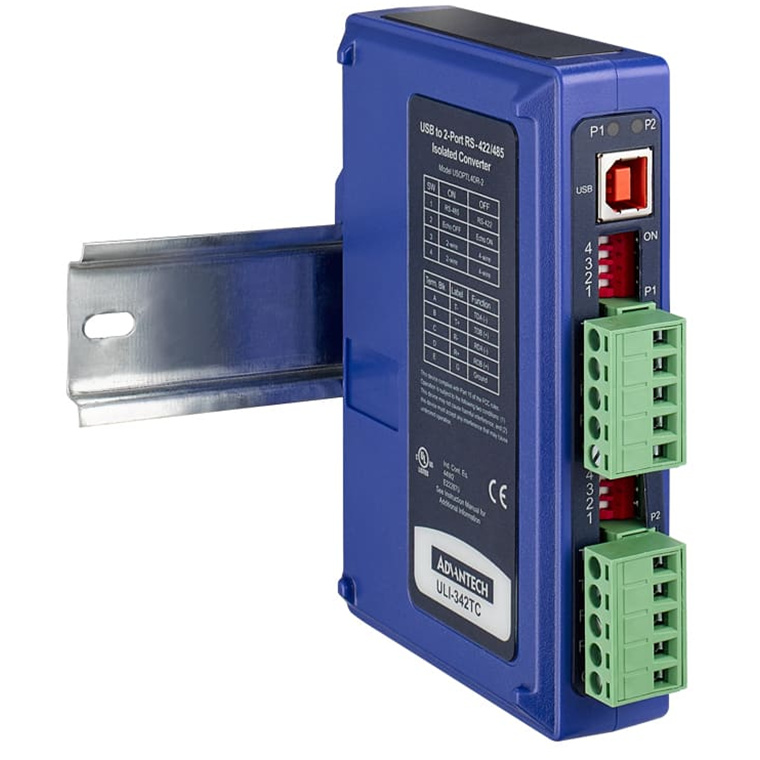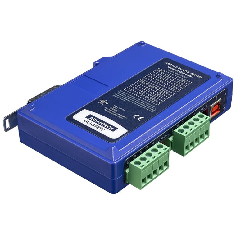 Advantech BB-USOPTL4DR-2 ULI-342TC - USB to 2 Port RS422/485 (Terminal Block) Isolated Converter, DIN Rail