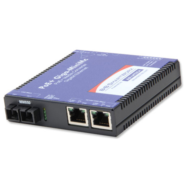 Mini PoE+ Media Converter, 1000Mbps, Multimode 850nm, 550m, SC (also known as MiniMc 857-11912TG)