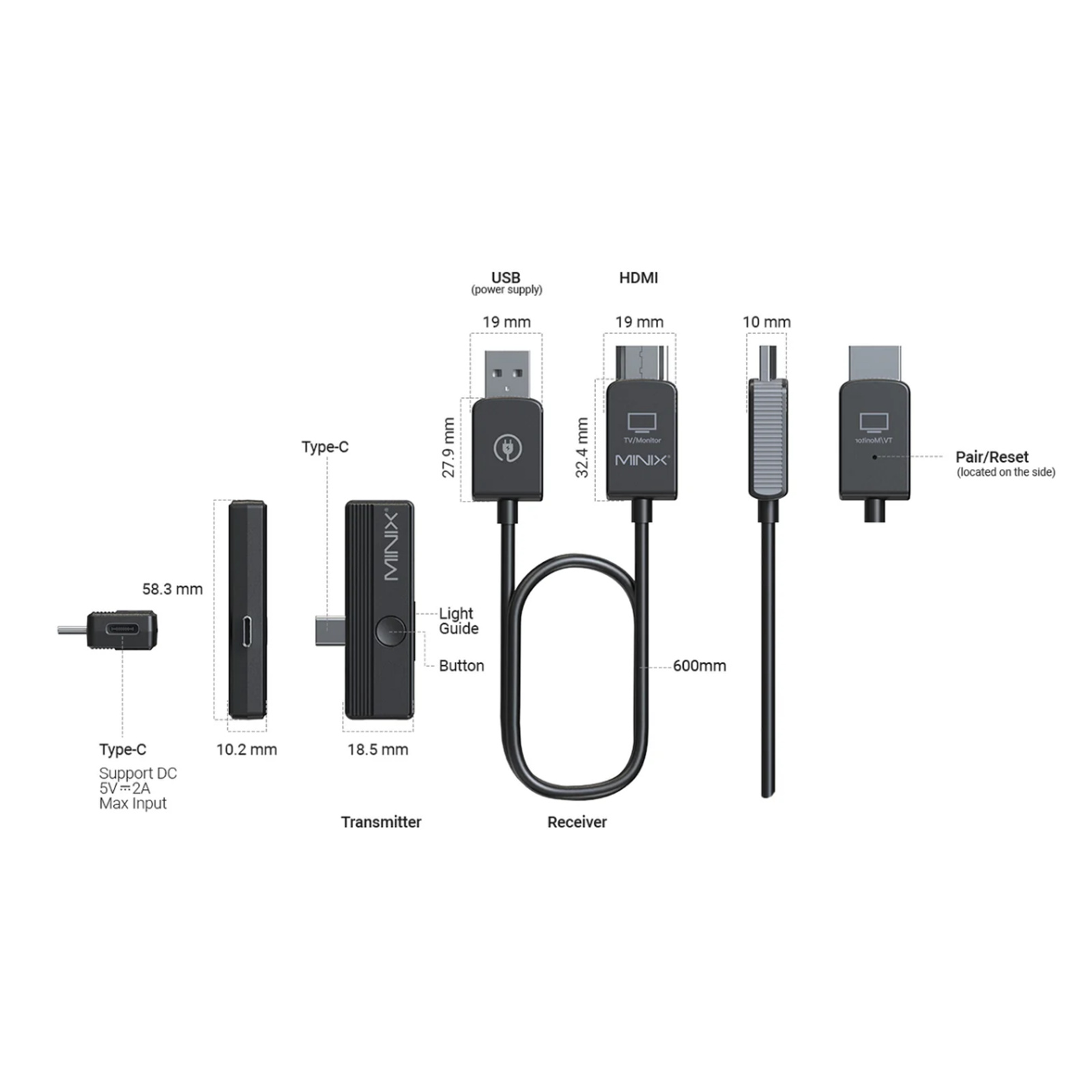 MINIX NEO C1 Plus 1080P 60Hz USB-C to HDMI Wireless Display Dongle with charging Port, Extender up to 50m - Flexible Display Options, MirrororExtendMode - Plug-and-play
