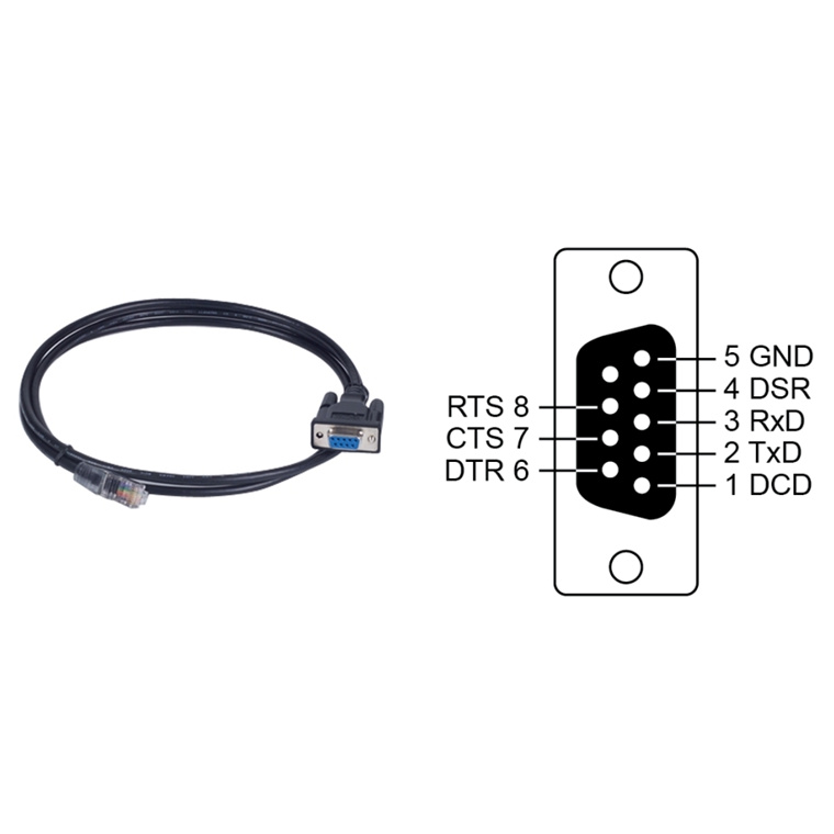 8-pin RJ45 to DB9 female serial cable with shielding, 1.5m